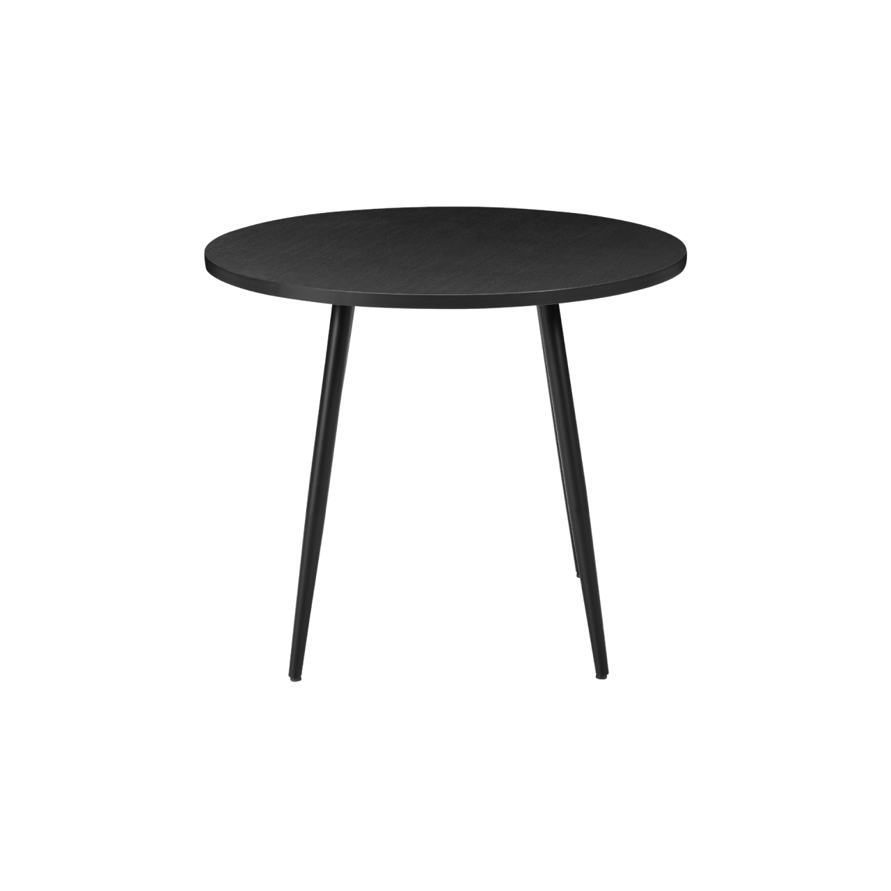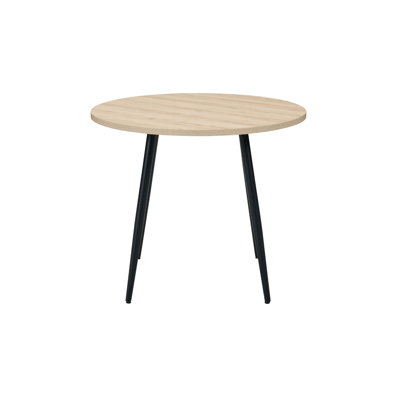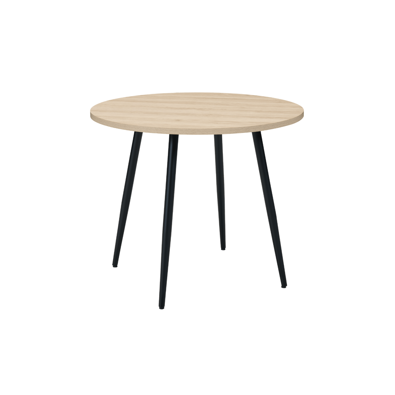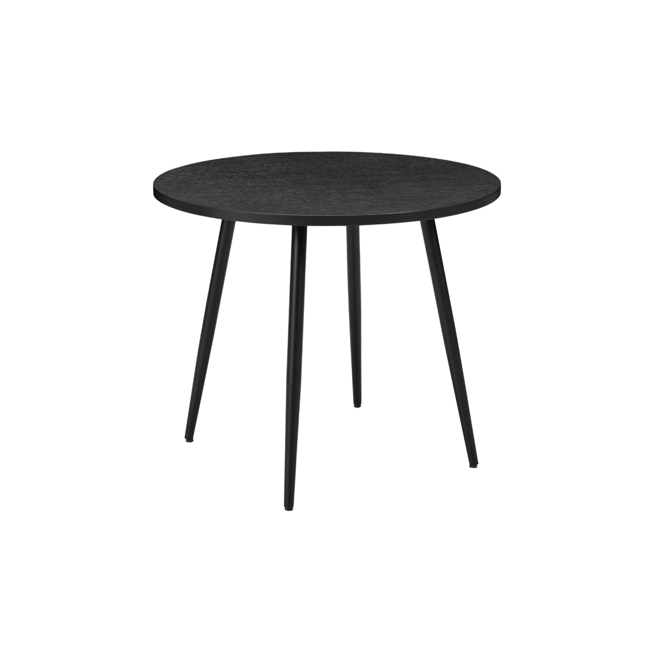 The Horizon Round Dining Table is a stylish, space-saving piece for compact dining areas and kitchens. Its woodgrain-effect tabletop brings warmth and texture. The sturdy, matt black metal legs provide a stable base, subtly tapering outward for a modern touch. Designed to comfortably seat up to four people, this table is a perfect blend of practicality and contemporary style. Crafted from durable, sustainable materials, it supports eco-conscious living.