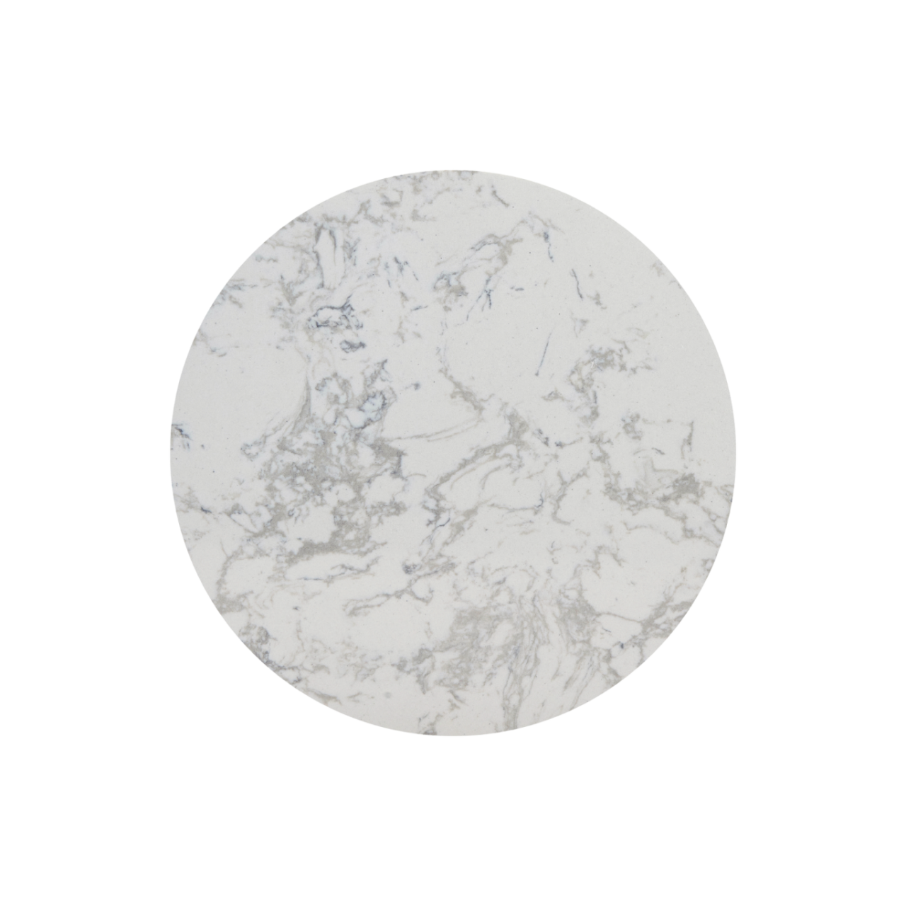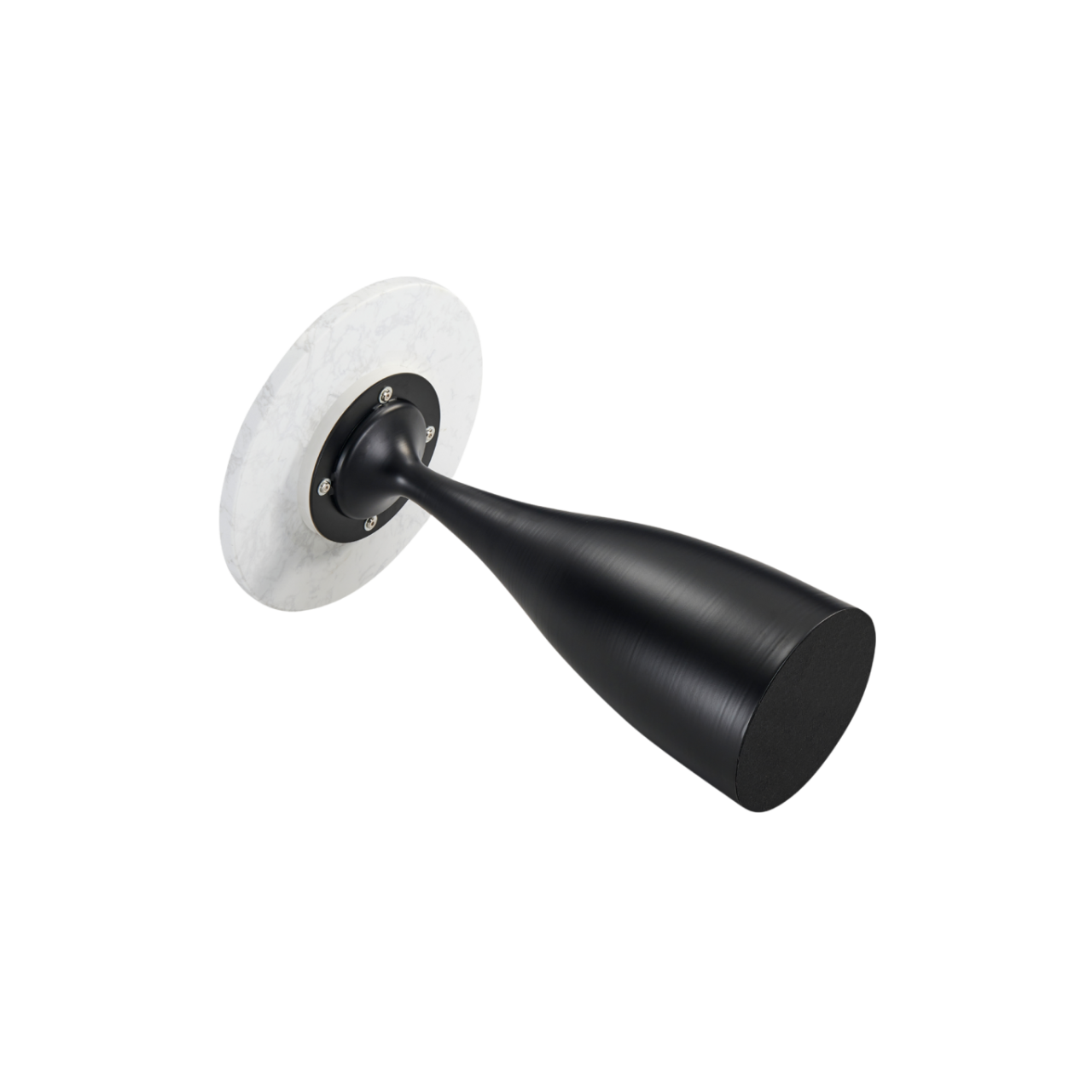 The Hazel Lamp Table features a sleek black iron base and elegant artificial marble top with curved column base. Perfect as a lamp table, side table, or accent piece in any room, this versatile piece combines modern and classic design elements.