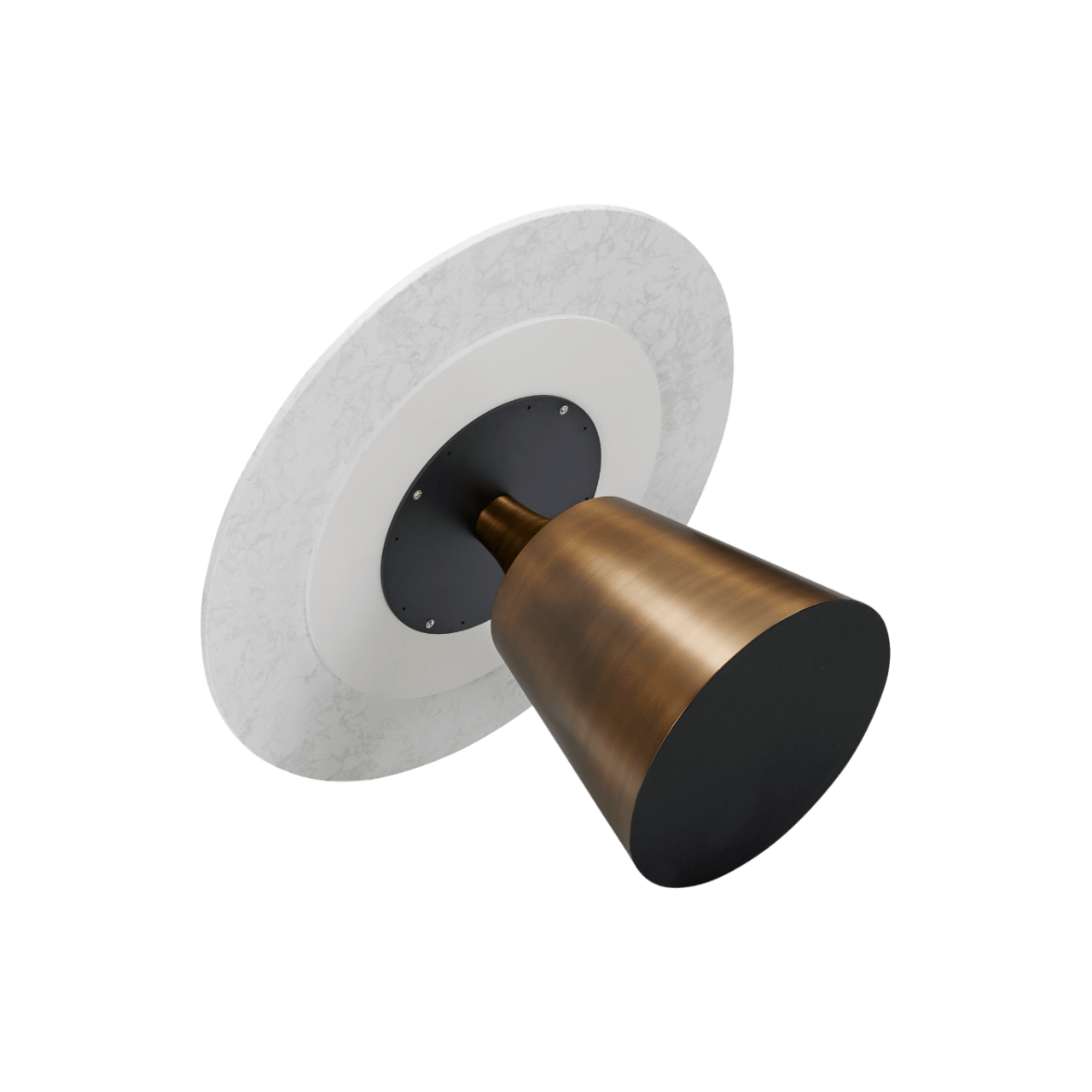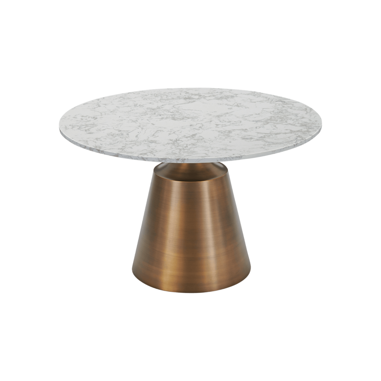 The Olive Large Dining Table is a spacious and stylish round table with modern design. The table features an antique bronze coloured column base which provides a sturdy and elegant look, and a large round white artificial marble top that is easy to clean and maintain. This table is ideal for large family meals and entertaining guests, the perfect functional table for any large dining room.