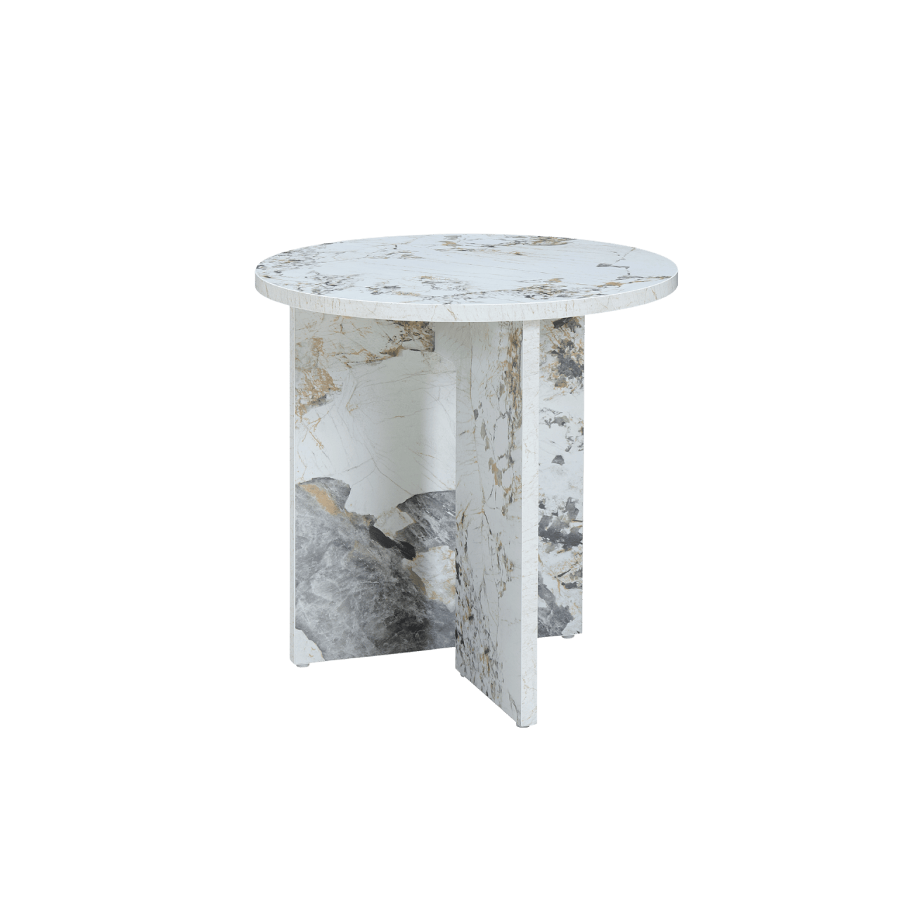The Aura Side Table impresses with its unique aesthetic and elegance. Its round top combines with an asymmetrical base made up of two perpendicular legs. This design gives it multiple profiles making it a truly versatile side table for a modern hallway, entryway or living room. Crafted with durable and responsibly sourced materials, it supports eco-conscious living while maintaining its stylish design.