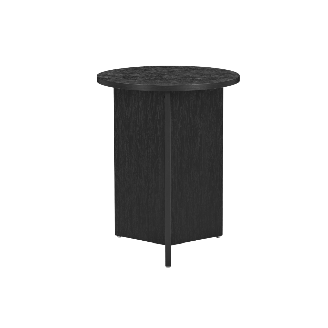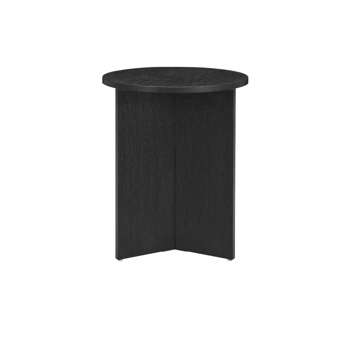 The Nova Side Table is a clean and stylish piece that can be integrated into a variety of modern designs. It has a round top and three rectangular legs which come together in a three-pointed star base. Finished in timeless black with a woodgrain effect, this table suits both residential interiors and show homes, offering versatility and understated elegance. Built with responsibly sourced materials, it supports sustainability without compromising style.