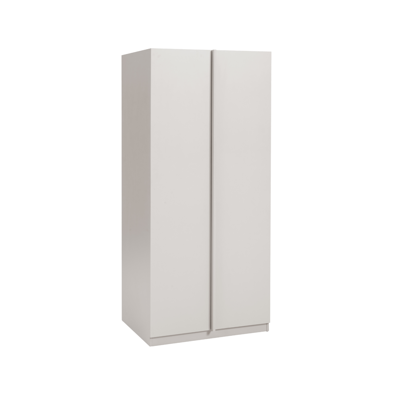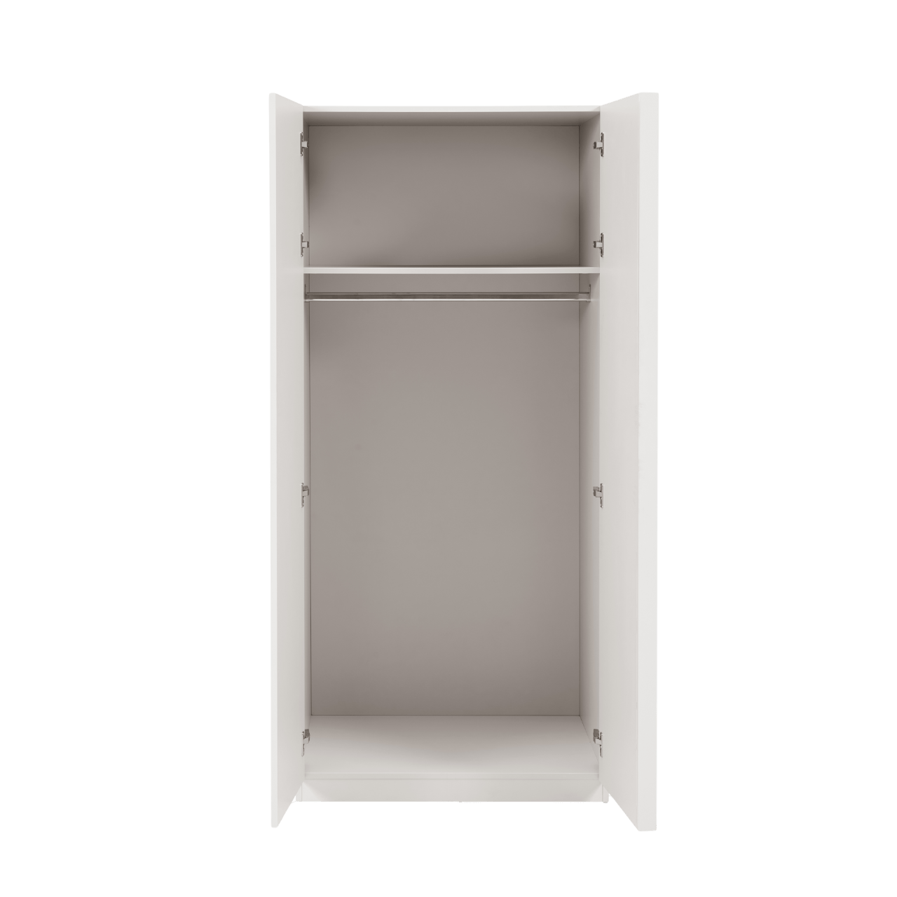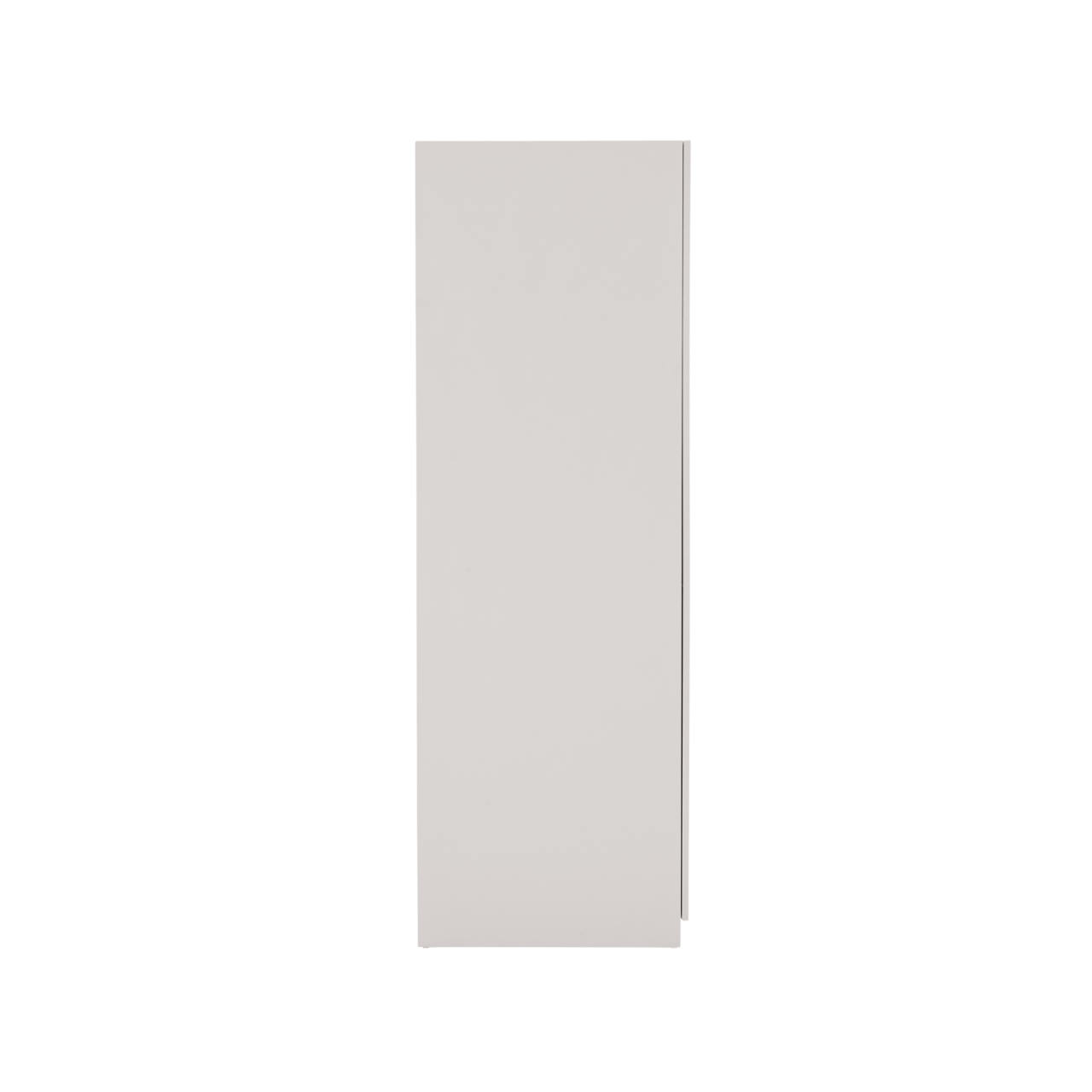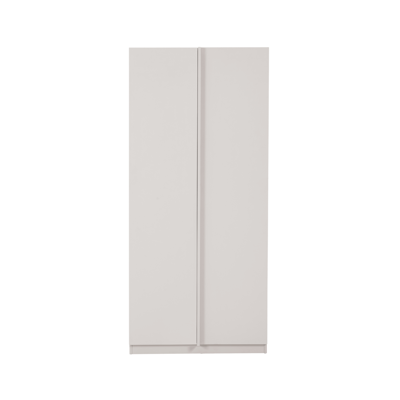 The Albion Wardrobe is a sleek, minimalistic storage solution for compact bedrooms. It has two doors with a single handle on the right-hand side and soft-close hinges. The handle protrudes outward, forming a vertical line that splits the wardrobe’s front into two symmetrical halves. The interior includes a clothes rail and shelf, with the top offering additional storage space. Thoughtfully crafted with durable and responsibly sourced materials, it supports sustainable practices while maintaining its modern design.