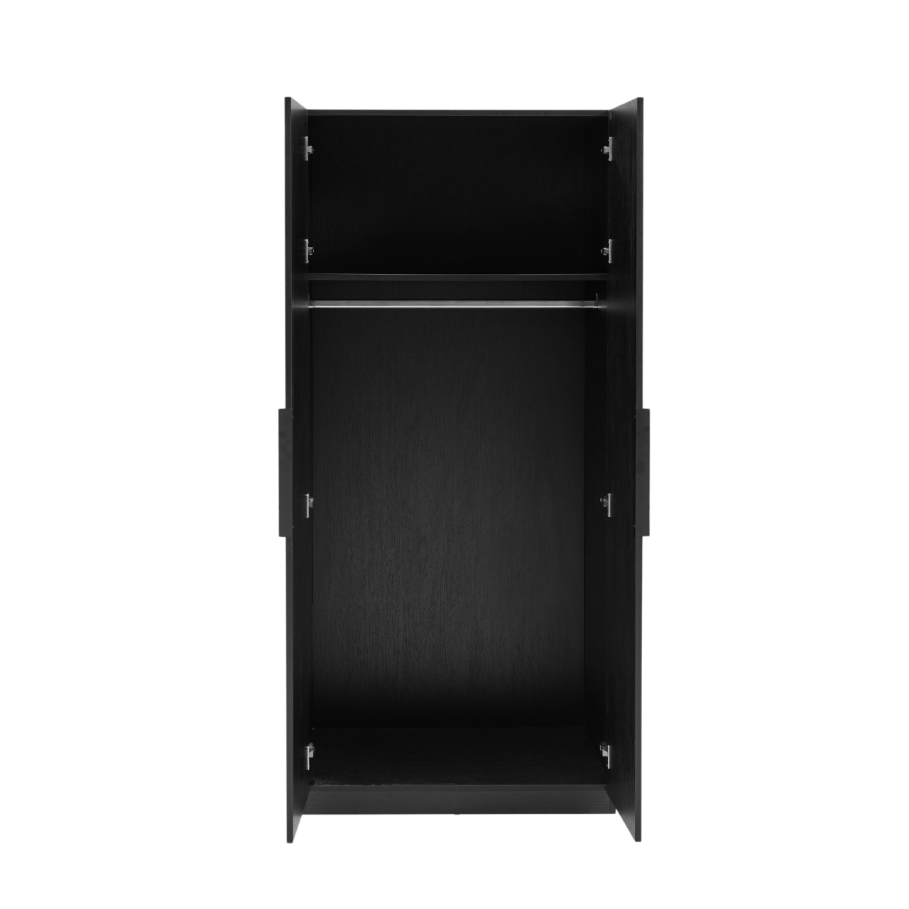 The Luna Wardrobe is ideal for smaller spaces and bedrooms with single occupants. Its doors feature soft-close hinges and sleek, matt black powdered metal handles. The interior of the wardrobe is minimalist, with a hanging rail and shelf above it. Easily accessible, the top of the wardrobe can also be used for extra storage. Designed with durable, sustainable materials, it is a functional and environmentally conscious solution.