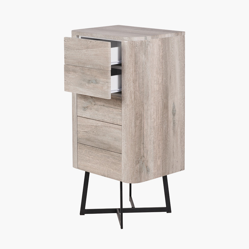 Ukiah Grey Oak Veneer and Black Metal 5 Drawer Tall Boy