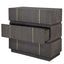 Introducing the Uttermost Between the Lines Accent Chest - a truly unique and refined piece of furniture. This accent chest features three drawers made of dark walnut acacia veneer, showcasing the rich and beautiful wood grain. The drawers are accented with stunning brass finishes, adding a touch of elegance to the overall design.