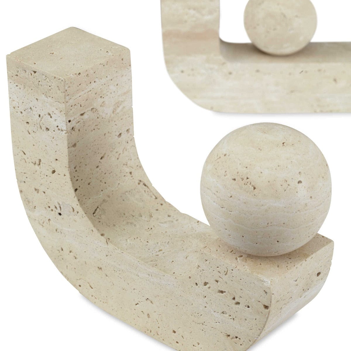 Introducing the Black Label Equilibrium Sculptures Set of 2, a truly unique and luxurious addition to any home. These unfilled beige travertine sculptures capture the moment when motion comes into balance, creating a stunning visual display. Use them as bookends or display them at different angles for added interest. The set includes two sizes: S- 22.9x17.8x7.6cm and L- 22.9x30.5x7.6cm.