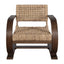 Introducing the Uttermost Rehema Accent Chair in Walnut - a truly unique and modern bohemian piece that will elevate any space. This accent chair features a natural woven water hyacinth seat on a curved solid wood frame, providing flexible movement and a touch of organic charm. The chair is layered in a teak veneer in warm walnut, adding a luxurious touch to its design.