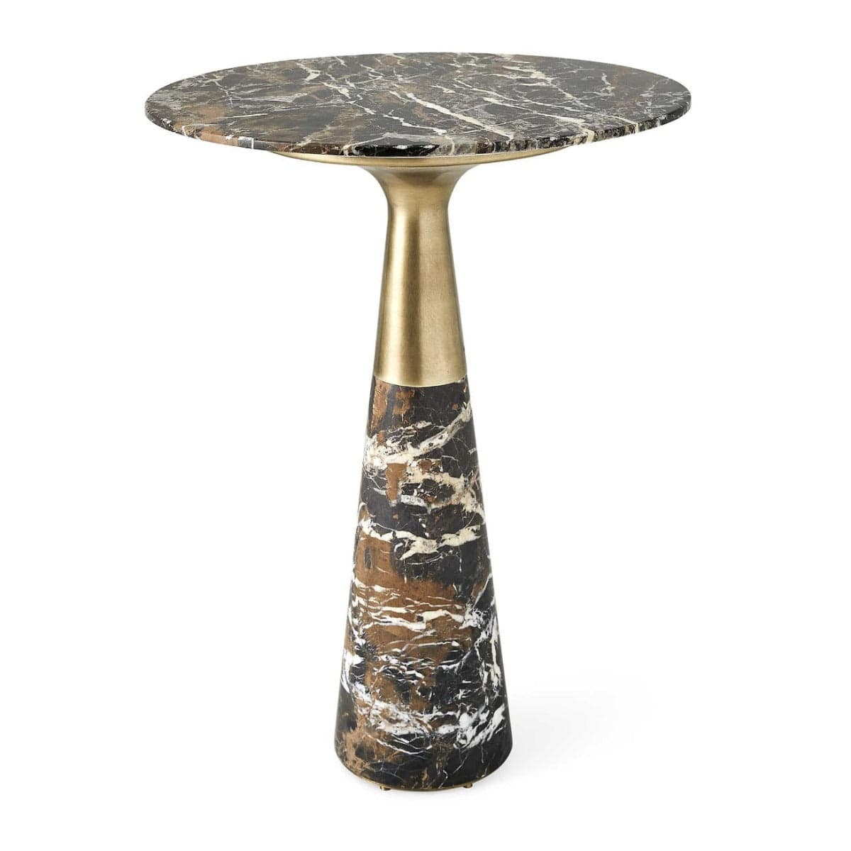 The Black Label Pier Accent Table measures 40.6 cm in width, 55.9 cm in depth, and 40.6 cm in height. Its round shape and marble material and finish make it a versatile and stylish addition to any room. Use it as an accent table or side table to add a touch of elegance to your space. And with free UK delivery, it's never been easier to bring a touch of luxury into your home. Shop now at House of Isabella for the finest in luxurious furniture and interiors.