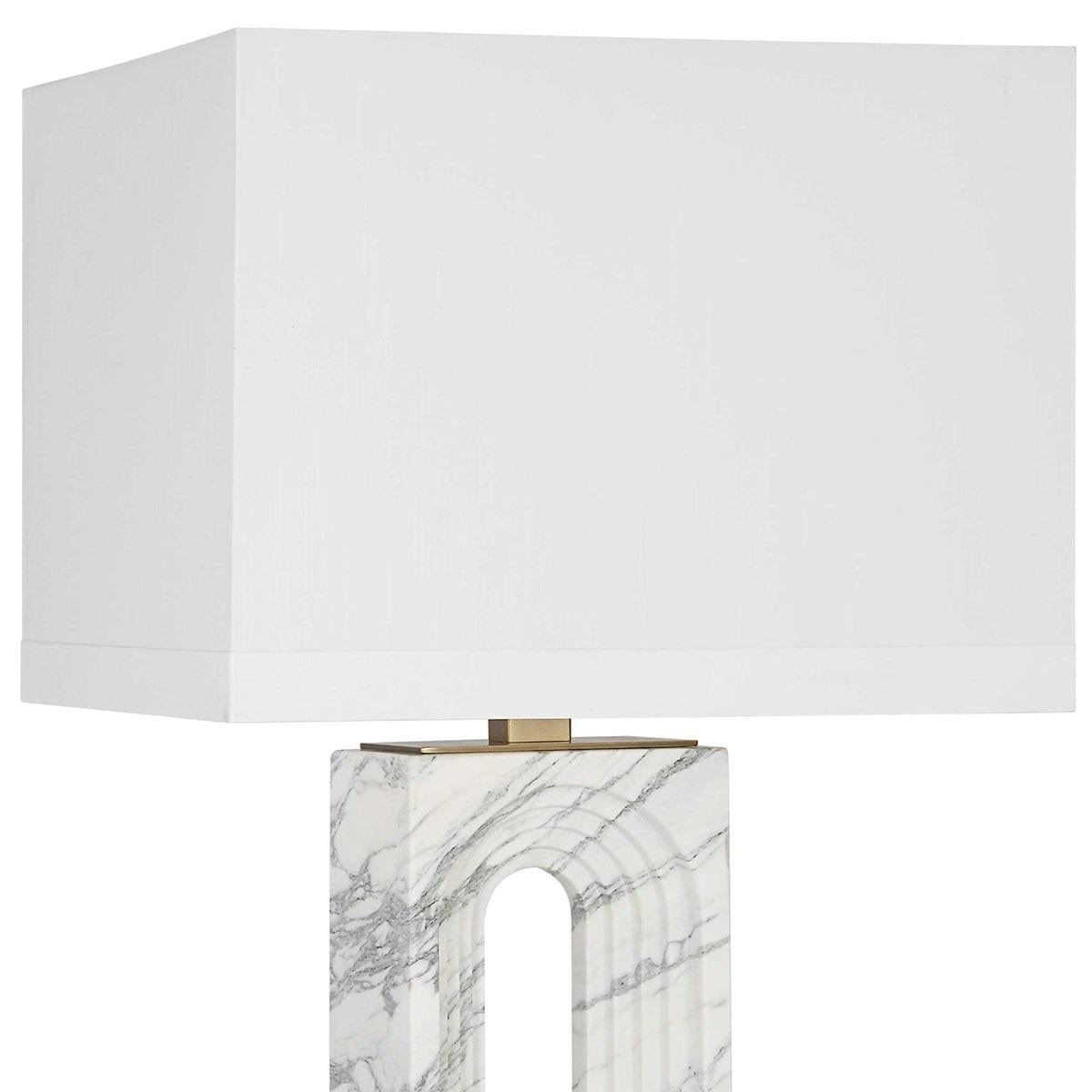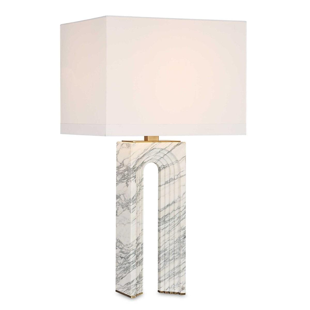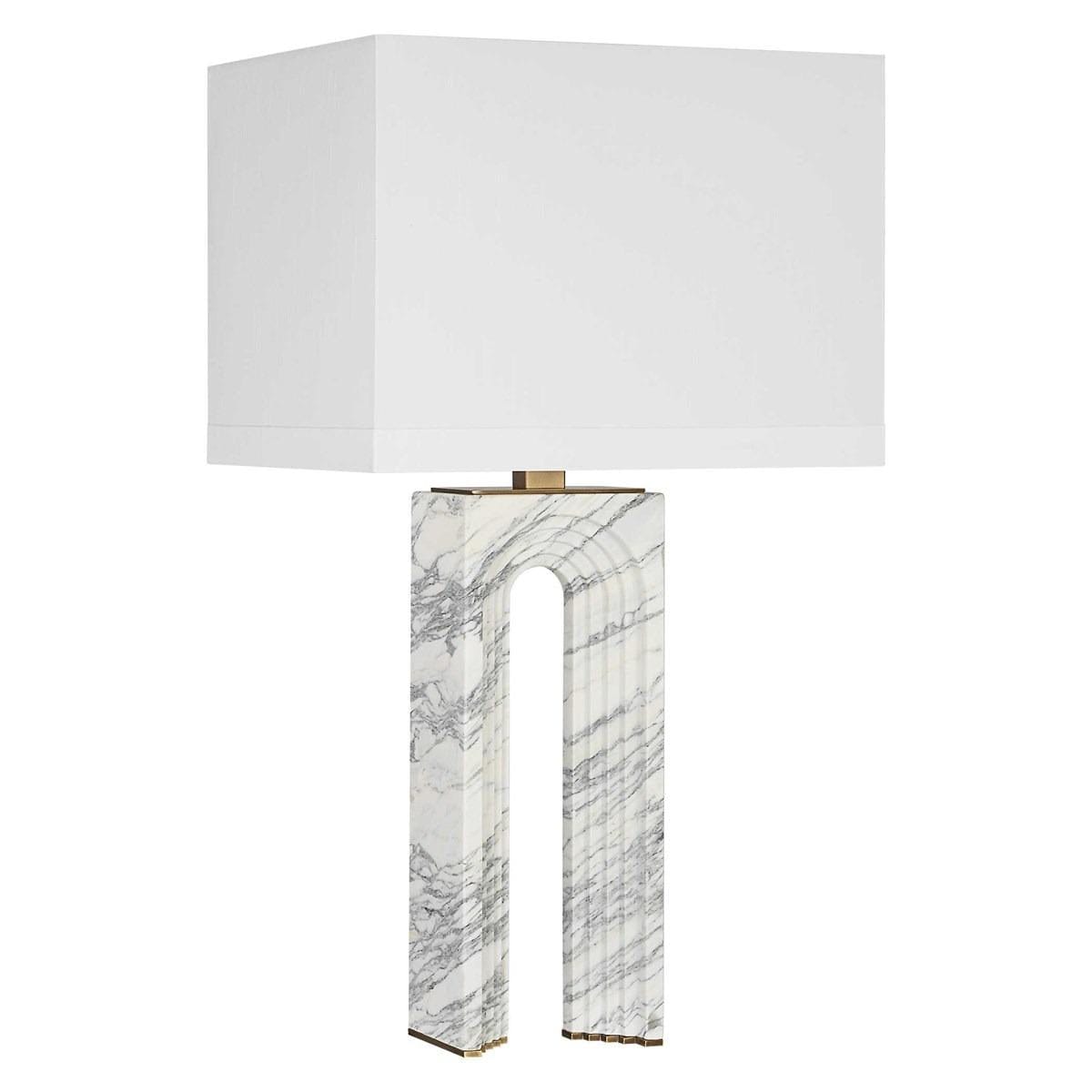 The Black Label Triumph Table Lamp is a truly unique and luxurious piece that will elevate any interior space. Crafted from a single block of beautiful Arabescato marble, the lamp features a triumphal arch design with recessed consecutive rings. The front and back are fully carved and hand-finished, resting on a light antique brass finish steel foot. The crisp-white rectangular hardback shade adds a touch of elegance with its 1.25' self trim. Part of the exclusive Black Label collection by Uttermost, this lamp is designed by our in-house team of skilled designers. We pride ourselves on bringing you the latest in American style without compromising on quality. Our focus is on upscale home luxury, with relaxed design and generous proportions for a sophisticated look. Our collection includes oversized mirrors, large sets of artwork, and elaborate lamps and lighting fixtures. At House of Isabella, we understand that good design means nothing without quality manufacturing. That's why we ensure that no shortcuts are taken in the production of our products. The Black Label Triumph Table Lamp is no exception, with its impeccable craftsmanship and attention to detail. Dimensions: Width: 40.6 cm, Depth: 74.3 cm, Height: 40.6 cm Type: Table Lamp Material, Finish: Fabric, Marble, Steel Suitable For: Indoor Bulb Type: E27 Max Bulb Wattage: 150 Bulb Qty: 1 Lampshade: H 30.48cm x W 40.64cm x D 33.02cm Switch: Socket Switch House of Isabella offers free UK delivery on all our luxurious furniture and interiors. Elevate your home with the Black Label Triumph Table Lamp and experience the perfect blend of style and quality.