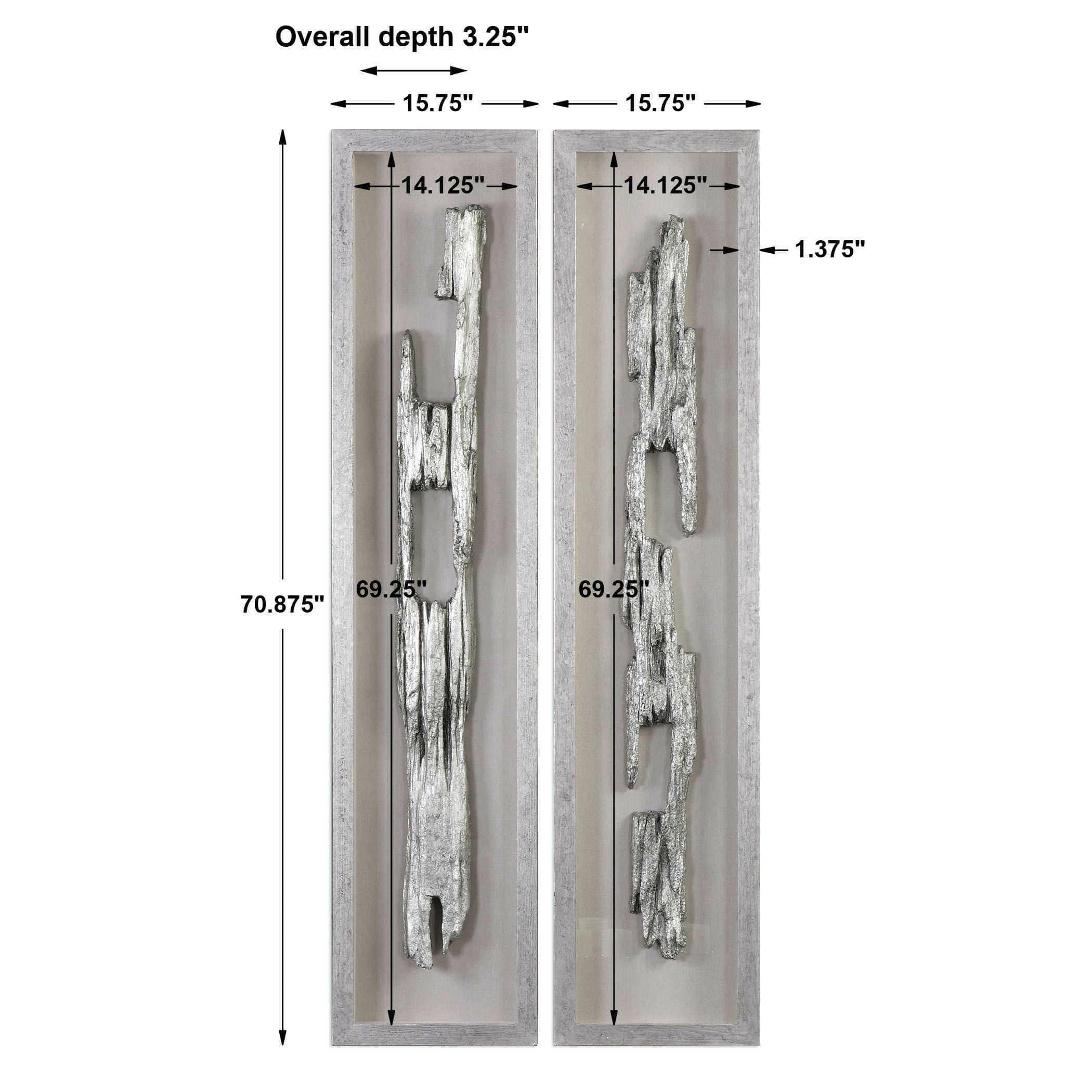 Black Label Amalur Shadow Boxes, S/2 are a unique and luxurious addition to any home. These shadow boxes are replicated from old fence posts and finished in a bright metallic silver, giving them a vintage yet modern feel. The hand applied silver leaf framed shadow box adds an elegant touch to the overall design. These boxes can be hung horizontally or vertically, making them versatile for any space. Part of the Black Label collection by Uttermost, these shadow boxes are designed by our in-house team of skilled designers. This collection features premium upscale furniture, lighting, and home accessories, all with a focus on American style and luxury. The pieces are designed with generous proportions and a relaxed design, perfect for a sophisticated home. At House of Isabella, we prioritize both fashion-forward design and quality manufacturing. Our products are made with the highest standards to ensure they exceed expectations. The dimensions of these shadow boxes are 40 cm in width, 8.3 cm in depth, and 180 cm in height. Transform your home into a luxurious space with the Black Label Amalur Shadow Boxes, S/2. Shop now at House of Isabella for free UK delivery on all orders.