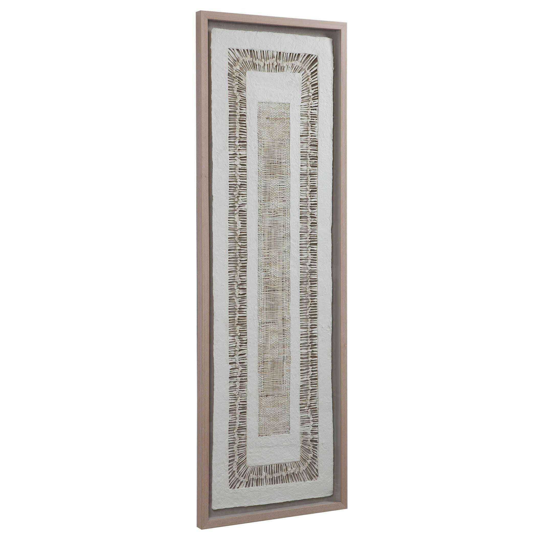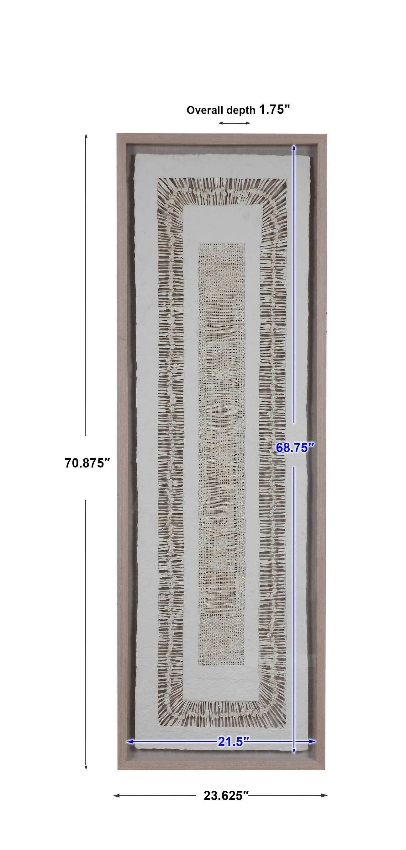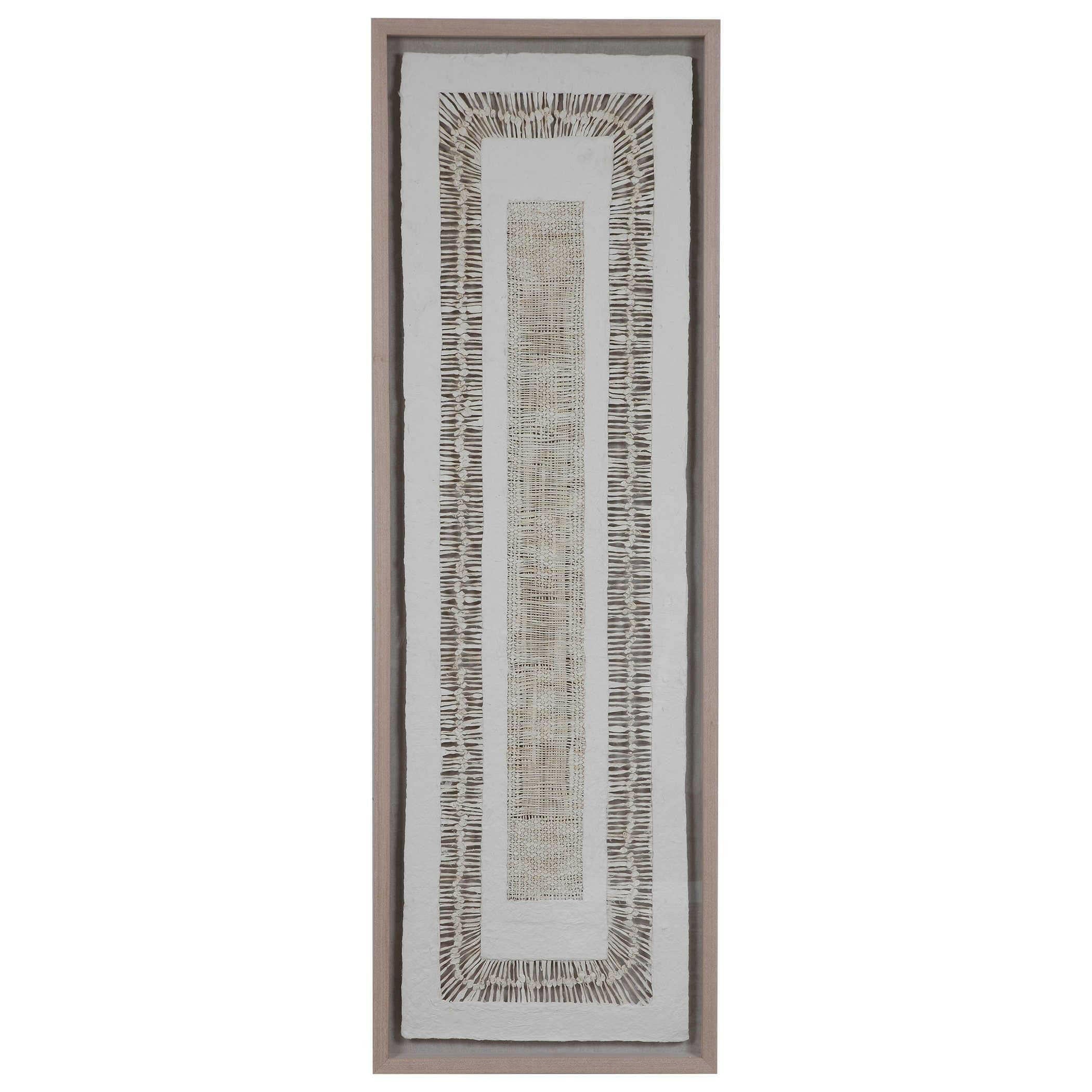 Introducing the Black Label Ancestors Parchment Shadow Box, a truly unique and exquisite piece from our exclusive collection at Uttermost. Handcrafted with precision and care, this shadow box features hand cut Mulberry paper intricately knitted together to create a stunning 3-dimensional display. The beige linen backing and naturally finished pine shadow box add to its global and luxurious look. Hang it horizontally or vertically to suit your space.