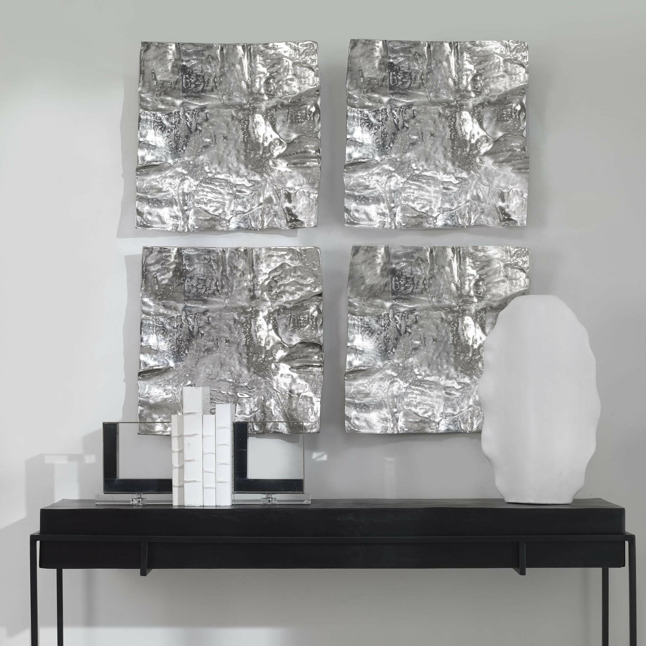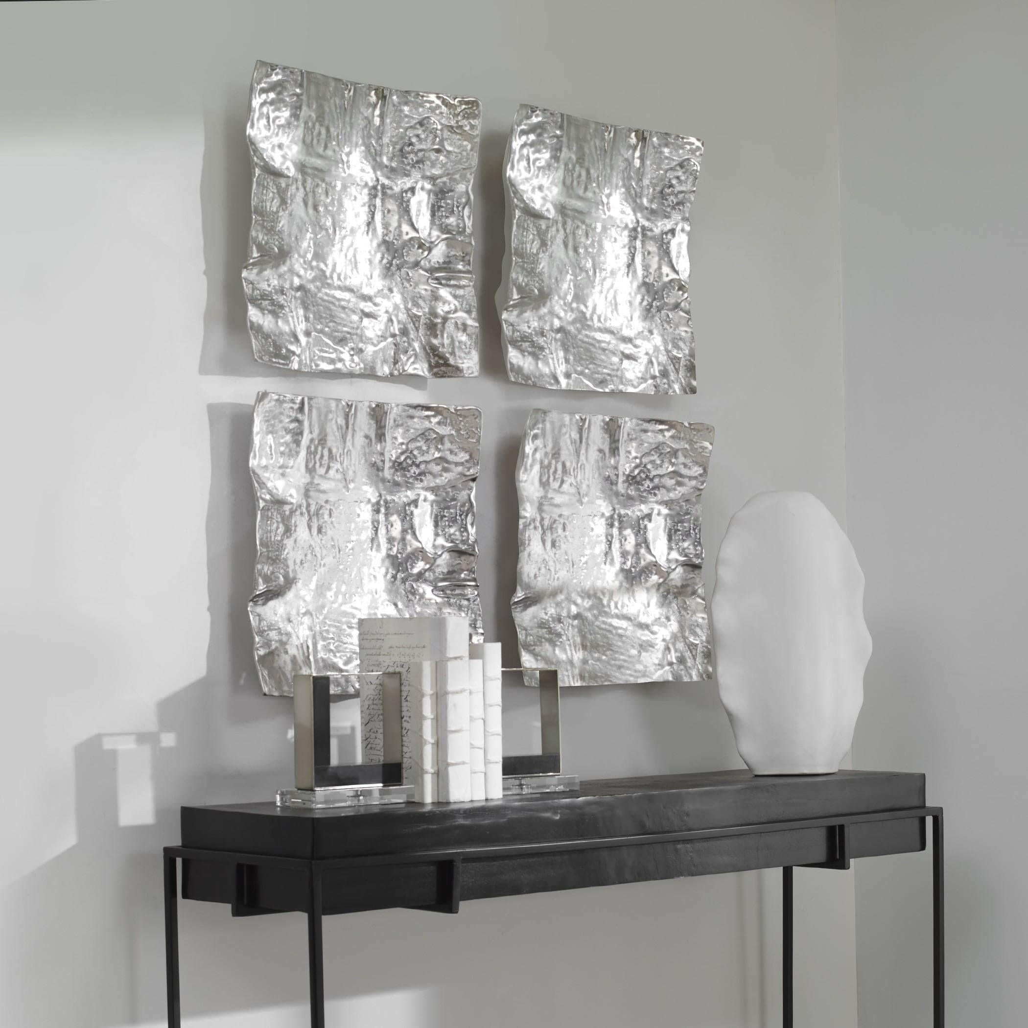 Introducing the Archive Nickel Wall Decor, a handcrafted cast aluminum wall accent that will add a touch of luxury to any room. Its heavily textured organic shape is finished in a stunning nickel plating, making it a truly unique piece. The circular hanger on the back allows for endless hanging options, allowing you to create one-of-a-kind wall designs. But that's not all - felt pads are also included, making it versatile enough to be used as a tabletop tray.