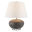 The Beckley Table Lamp is a truly unique and luxurious addition to any home. Its ceramic base boasts a distressed charcoal glaze with a stunning stone-like texture and bronze highlights. The lamp is further enhanced by a thick crystal foot and plated nickel hardware, adding a touch of elegance to its design. The tapered round hardback shade is covered in a casual white linen fabric, creating a beautiful contrast to the base.
