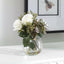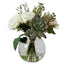 Introducing the Belmonte Floral Bouquet & Vase, a modern and unique addition to your home decor. This stunning bouquet features a mix of berries, greenery, seed pods, succulents, and cream roses, all beautifully arranged in a clear glass bud vase with faux water. Created by the family-owned and managed US interior brand, Uttermost, this piece exudes an upscale luxury aesthetic.