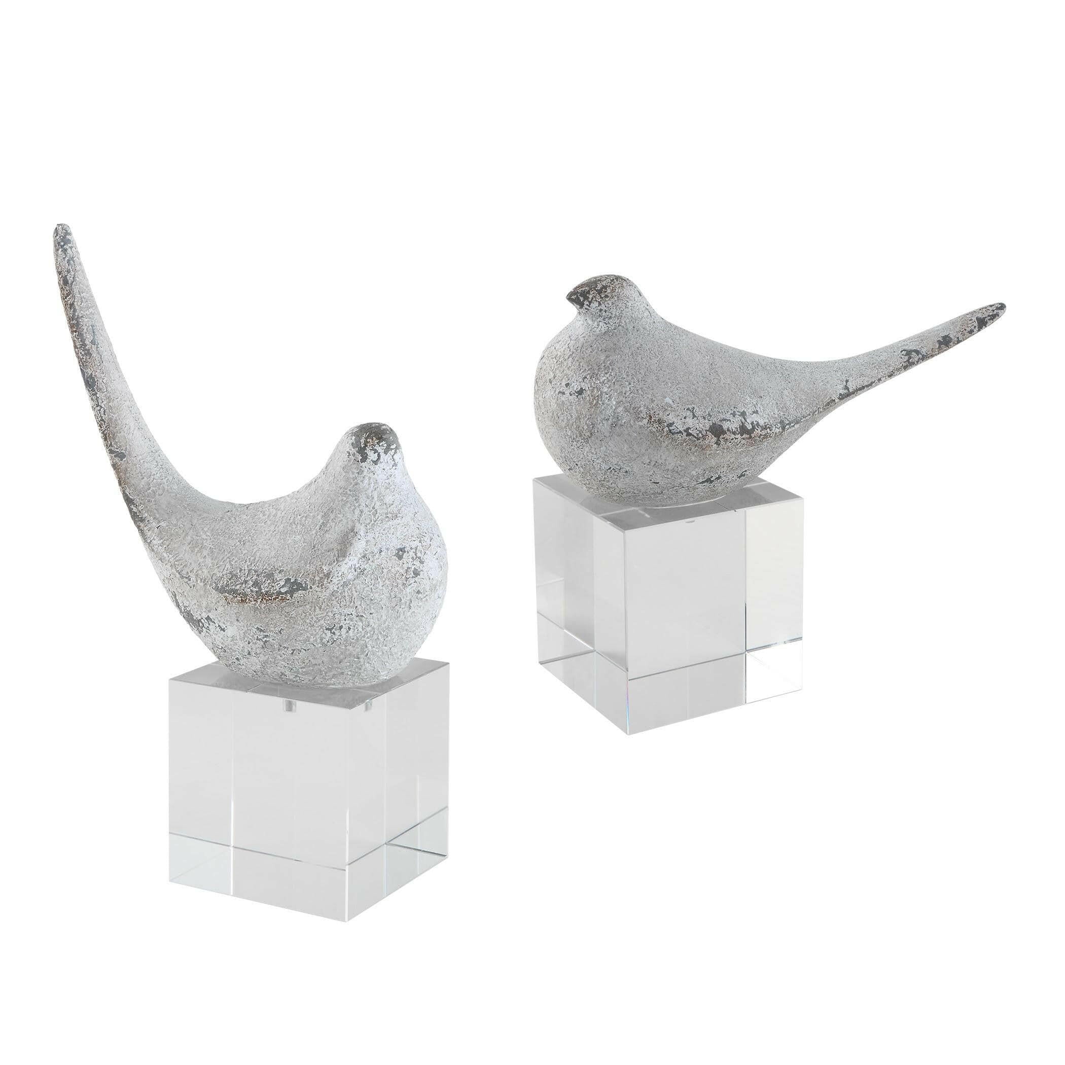 This unique product, titled 'Better Together Bird Sculptures, S/2,' is a set of two beautifully crafted bird figurines. The sculptures feature a textured silver finish with distressed details in gray and rust, adding a touch of character to the pieces. The birds are perched atop a thick crystal block base, creating a stunning display. What sets this product apart is its attention to detail and quality. Uttermost, a family owned and managed US interior brand, prides itself on its upscale luxury aesthetic and talented designers. Each piece is carefully crafted to bring elegance and sophistication to your home decor. The dimensions of the sculptures are S-4x8x9 and L-4x11x7, making them the perfect size to display on a shelf or table. At House of Isabella UK, we carefully select each item in our collection to ensure it adds a touch of luxury to your home. With free UK delivery, you can easily add these stunning bird sculptures to your collection.