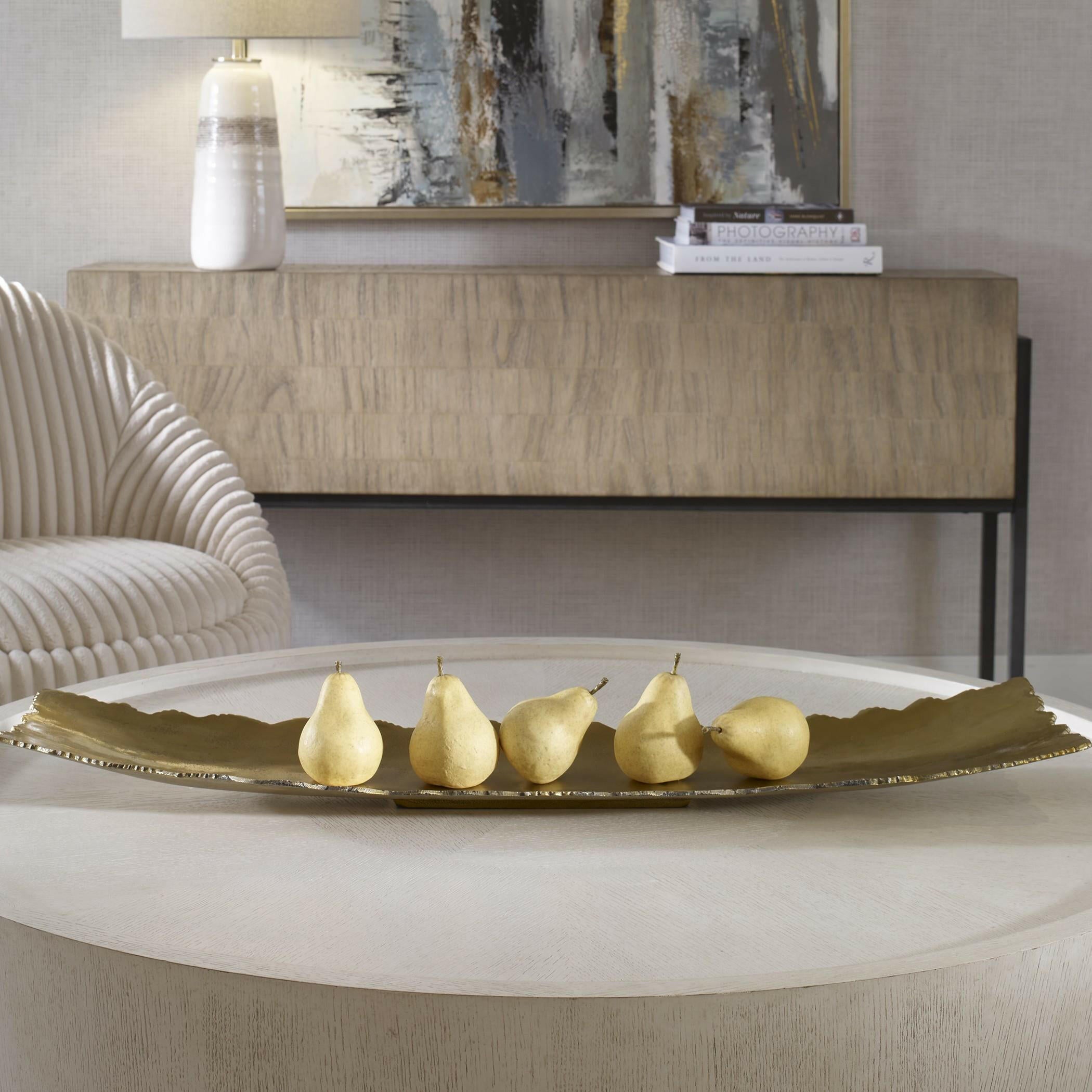 The Camilla Gold Tray from Uttermost is a truly unique and luxurious addition to any home. Its dramatic proportions and thick cast aluminum construction make it stand out from other trays on the market. The rough cut edge adds a touch of texture, while the polished finish gives it a soft and elegant feel. Uttermost is a family owned and managed US interior brand known for their upscale luxury aesthetic. Their team of talented designers create fresh and unique collections to beautify your home. And with a focus on quality manufacturing, you can trust that this tray will exceed your expectations.