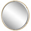 Introducing the Canillo Gold Round Mirror, a truly unique and luxurious addition to any home. This mirror frame is crafted from rounded metal and finished in a heavily antiqued gold leaf, giving it a stunning and elegant appearance. The floating beveled mirror adds a touch of modernity to this classic design. At Uttermost, a family owned and managed US interior brand, we pride ourselves on our upscale luxury aesthetic. Our extensive range of furniture, lighting, and accessories are designed by some of the most talented designers in the industry, creating fresh and unique collections to beautify your home. We are dedicated to providing the most fashion-forward products, without compromising on quality manufacturing. You can trust that our products will exceed your expectations. The Canillo Gold Round Mirror measures 106.7 cm in width, 1.9 cm in depth, and 106.7 cm in height, making it the perfect size for any room. With free UK delivery, House of Isabella is your go-to destination for luxurious furniture and interiors. Elevate your home with the Canillo Gold Round Mirror and experience the ultimate in style and sophistication.