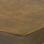Introducing the Cathenna Coffee Table - Brass Large, now available in an oversized 40 inch dimension. This stunning piece features a uniquely faceted shape, adding a touch of modern elegance to any living space. Made from heavily textured cast aluminum and finished in a rich oxidized brass, each table has its own unique coloration due to the chemical reaction of the antiquing process.