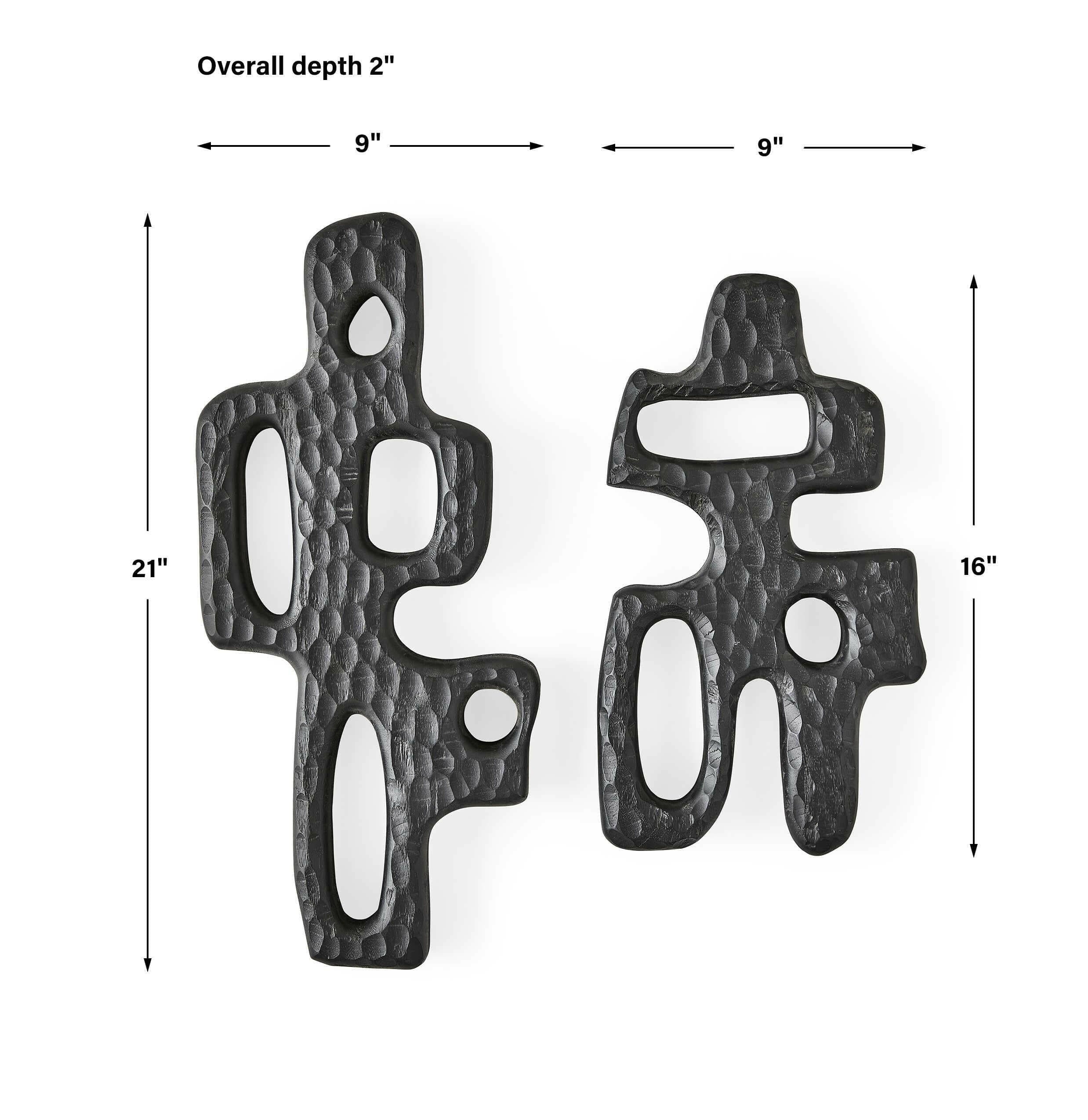 Black Label Chiseled Silhouette Wall Sculptures, S/2