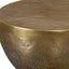 The Coup Side Table is a truly unique piece that will add a touch of luxury to any room. Made from heavily textured cast aluminum, it features an aged brass finish with patina accents that give it a one-of-a-kind look. Each piece is hand-finished, resulting in a beautiful and individual coloration. This table is part of the Black Label collection by Uttermost, which offers the most exclusive and upscale furniture, lighting, and home accessories. Designed by our in-house team of skilled designers, this table showcases American style and quality without compromise. Its generous proportions make it perfect for a sophisticated and luxurious home. Use it as a sofa side table, bedside table, or occasional table to elevate your interior design. With dimensions of 30.5 cm in width, 30.5 cm in depth, and 55.9 cm in height, it is the perfect size for any space. Shop now at House of Isabella for luxurious furniture and enjoy free UK delivery.