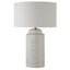 Introducing the Crimp Ribbed Table Lamp, a truly unique and luxurious addition to any home. This ceramic lamp boasts a heavy ribbed texture, finished in a distressed ivory glaze with gold leaf undertones. The plated brass details add a touch of elegance to the overall design. Paired with a round hardback drum shade in a casual white linen fabric, this lamp is the perfect combination of style and functionality.