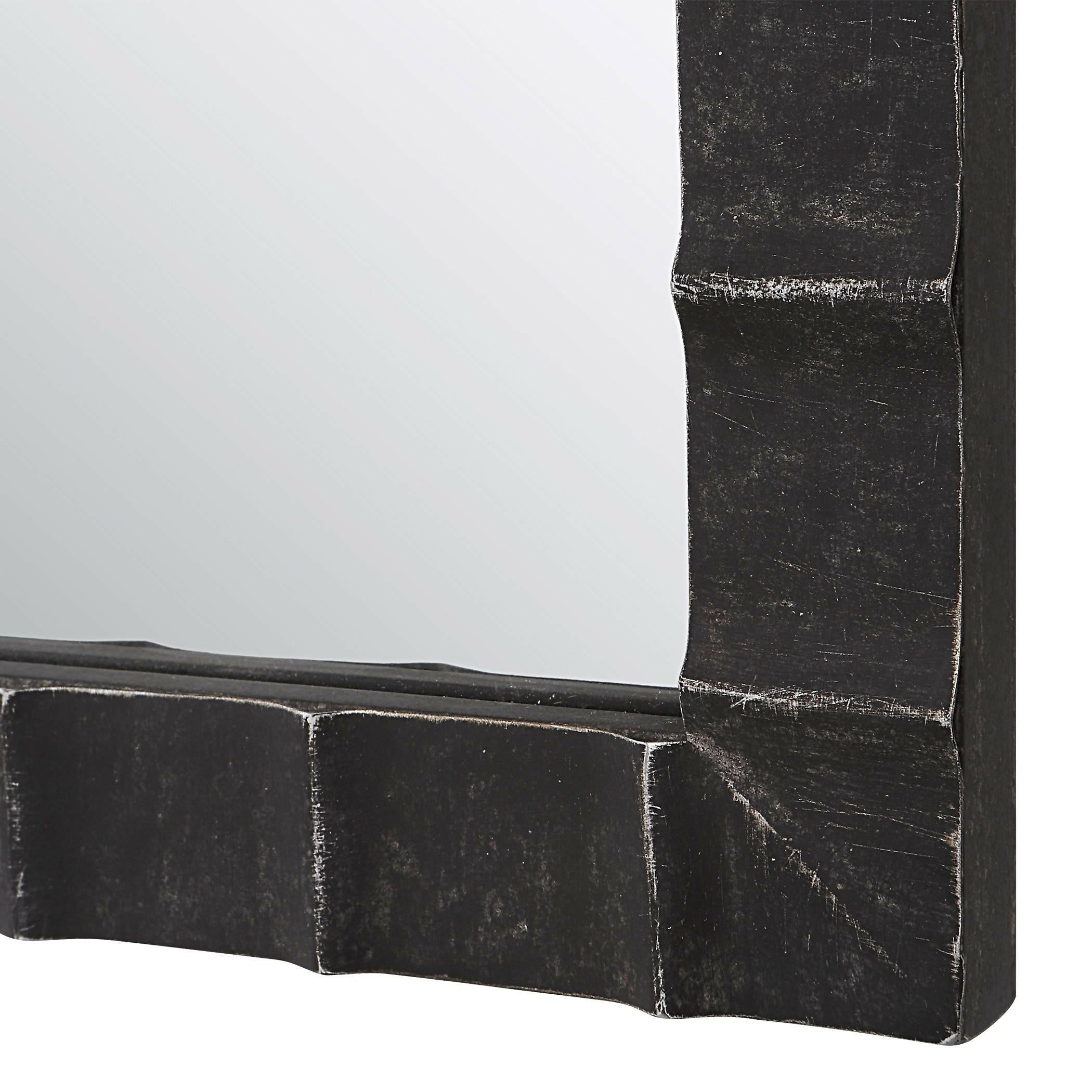 Introducing the Dandridge Black Arch Mirror, a truly unique and eye-catching addition to any home. Hand forged from iron, this mirror features raised ridges for a touch of industrial influence. The matte black finish with silver undertones adds a slightly distressed look, giving it a one-of-a-kind charm.