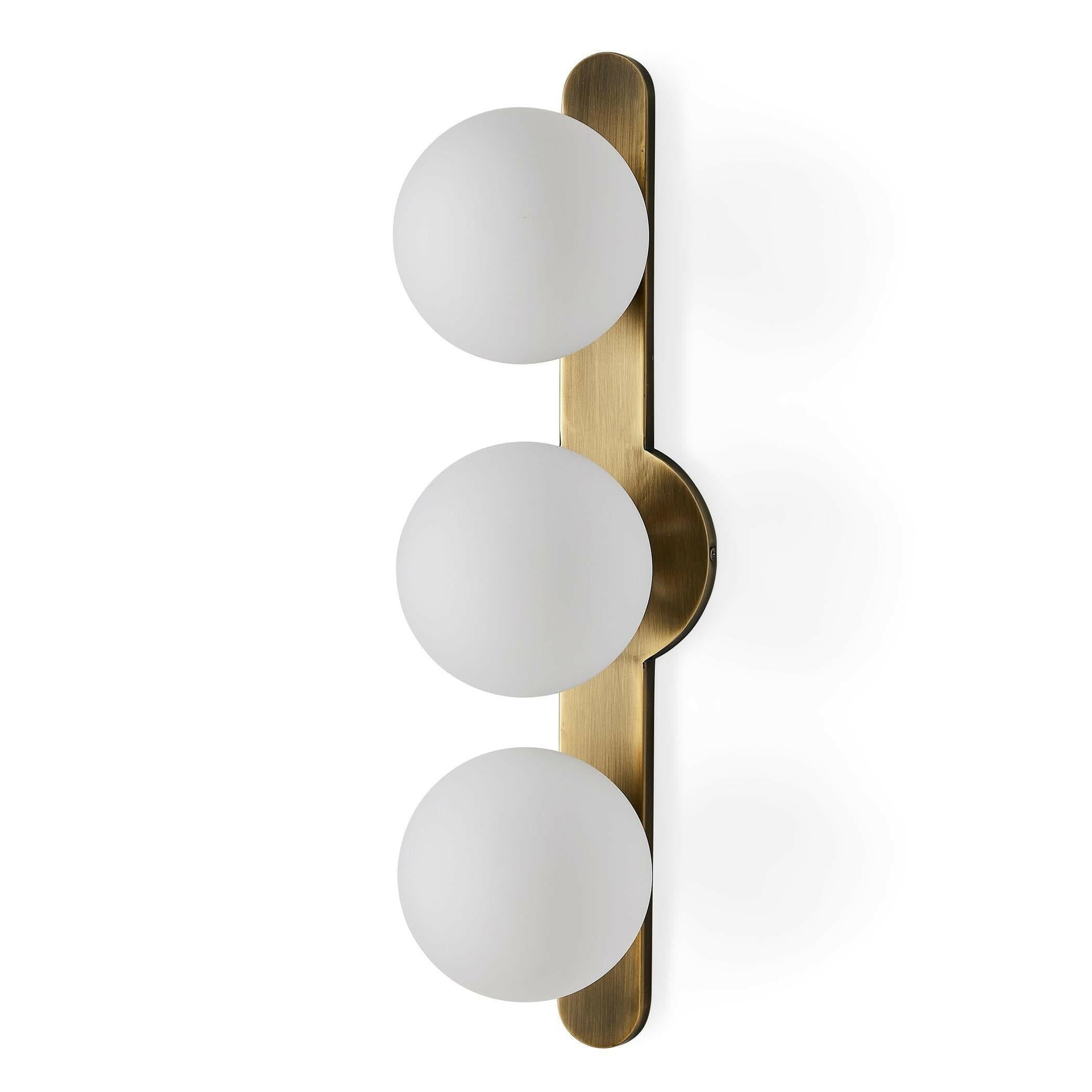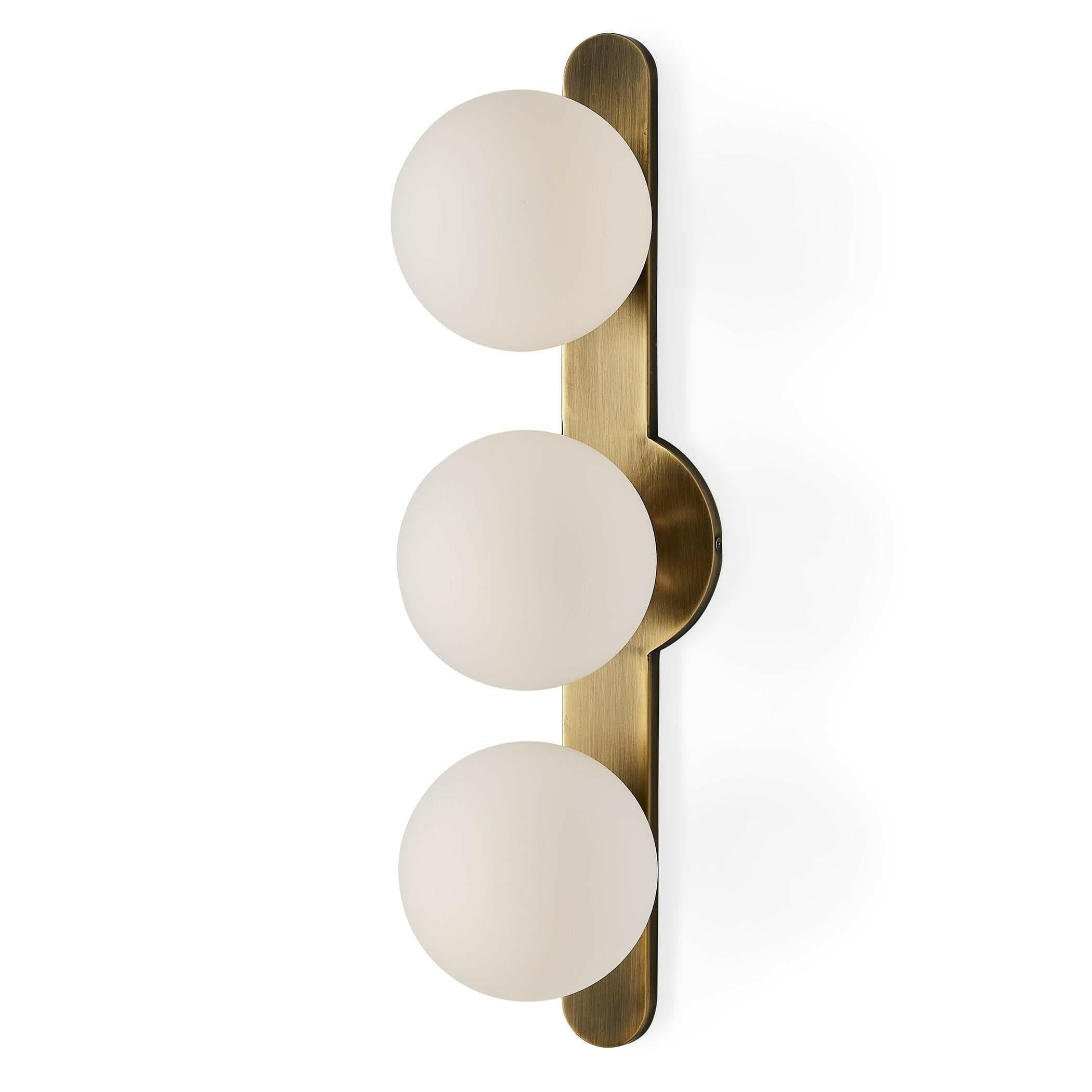 Introducing the Droplet Mid-century 3 Light Sconce, a unique and modern take on vintage style. This stunning wall light features a warm antique brass finish and is accented with 5' matte white opal globes, adding a touch of elegance to any room. With 3-60 watt max candelabra sockets for G16.5 bulbs, this sconce provides ample lighting while also making a statement.Uttermost is a family owned and managed US interior brand, known for its upscale luxury aesthetic. Our extensive range of furniture, lighting, and accessories are designed by some of the most talented designers in the industry, creating fresh and unique collections to beautify your home. We pride ourselves on not only offering fashion-forward products, but also ensuring quality manufacturing. You can trust that our products exceed expectations.The Droplet Mid-century 3 Light Sconce has dimensions of 12.7 cm in width, 18.4 cm in depth, and 55.9 cm in height, making it the perfect size for any space. At House of Isabella, we offer luxurious furniture, interiors, and free UK delivery, making it easy to add a touch of elegance to your home. Trust in our quality and style to elevate your space.