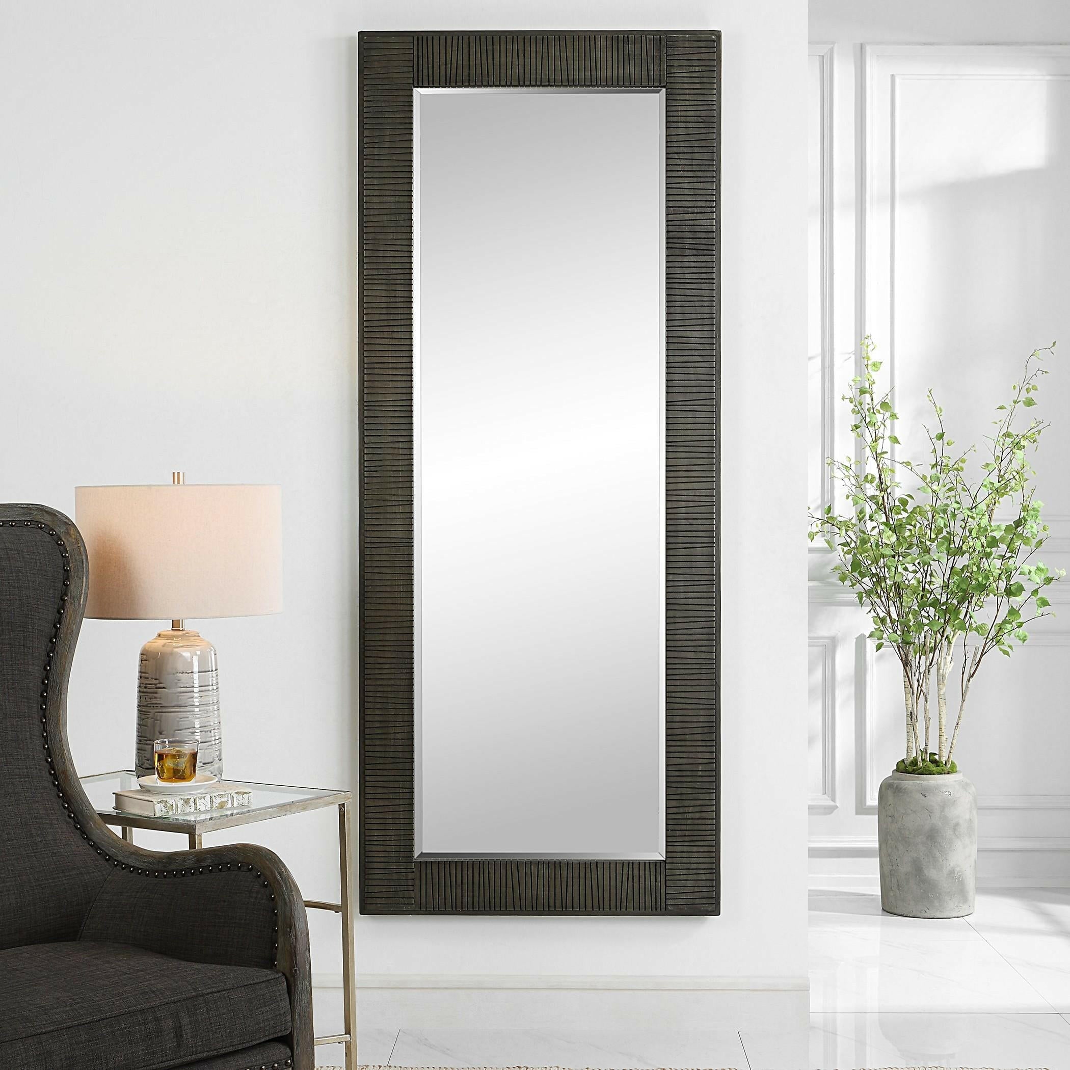 Introducing the Figaro Oversized Wooden Mirror, a truly unique and luxurious addition to any home. This stunning mirror features a solid wood frame with hand carved channels, finished in a rustic wood tone with an aged gray wash. The generous 1 1/4' bevel adds a touch of elegance and can be hung either horizontally or vertically. At Uttermost, a family owned and managed US interior brand, we pride ourselves on our upscale luxury aesthetic. Our team of talented designers continuously create fresh and unique collections to beautify your home. We are dedicated to providing the most fashion-forward products in the industry, without compromising on quality manufacturing. You can trust that our products will exceed your expectations. The Figaro Oversized Wooden Mirror measures 85.1 cm in width, 5.1 cm in depth, and 207 cm in height, making it a statement piece in any room. With free UK delivery, House of Isabella is your go-to destination for luxurious furniture and interiors. Elevate your home with the Figaro Oversized Wooden Mirror today.