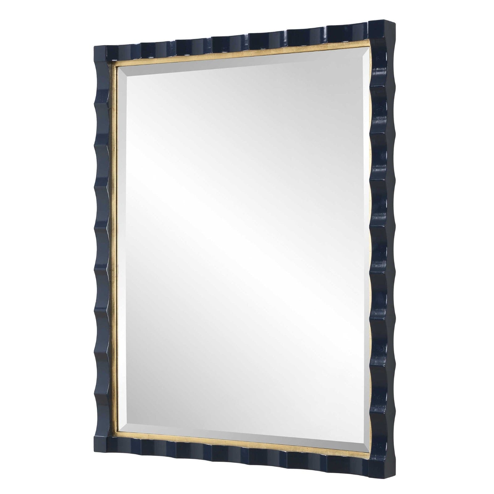 The Gulf Mirror in Navy is a truly unique and luxurious piece that will elevate any room in your home. Its scalloped edge and gold leaf inner liner add a touch of elegance, while the rich navy lacquer finish adds depth and sophistication. This mirror can be hung horizontally or vertically, making it versatile and perfect for any space.