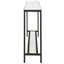 Introducing the Hayley Black Console Table, a classic and minimalistic piece that will elevate any space. Made from steel and finished with a rustic black, this table exudes a sense of luxury and sophistication. The beveled mirrored top adds a touch of glamour, while the clear glass gallery shelf provides both style and functionality.