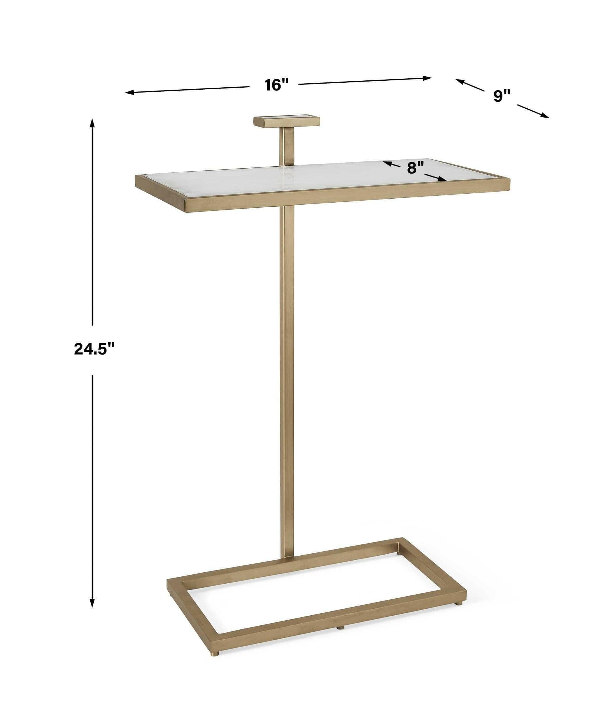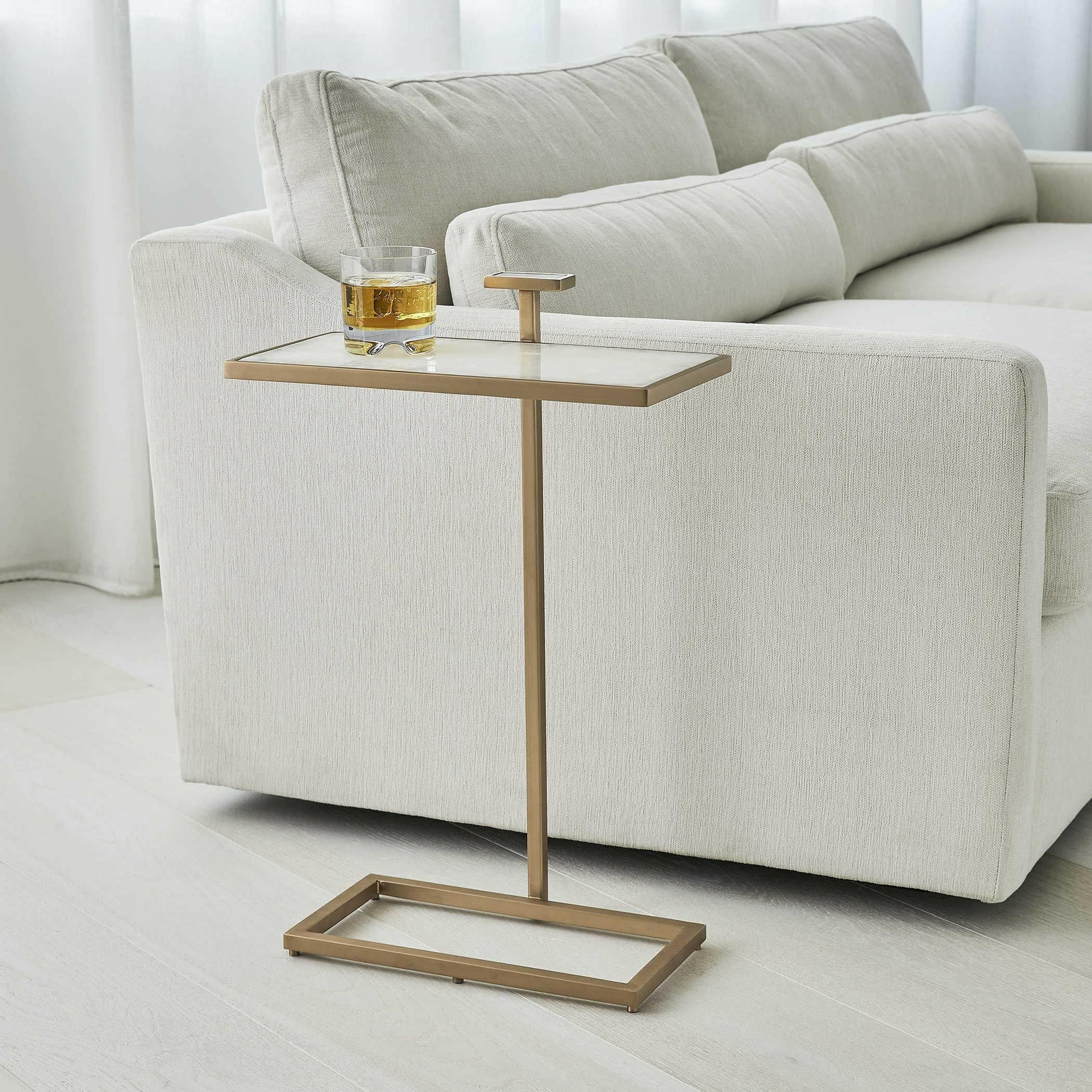 The Jewel Pull Up Accent Table is a true gem in the world of furniture. Its unique design combines both beauty and functionality, making it a must-have for any home. The table features a stunning quartz crystal top and handle inset, framed in a rich brass finish. This makes it the perfect addition to any living space, allowing you to pull it up to your favorite seat and enjoy a beverage in style.What sets this table apart is its inclusion in the Black Label by Uttermost collection. This is our most exclusive line of premium upscale furniture, lighting, and home accessories. Each item is meticulously designed by our in-house team of skilled designers, ensuring that you receive the latest in American style without compromising on quality.The Jewel Pull Up Accent Table is not just a piece of furniture, it's a statement. Its American design exudes luxury and sophistication, with generous proportions and a relaxed aesthetic. It pairs perfectly with oversized mirrors, large sets of artwork, and elaborate lamps and lighting fixtures, making it a versatile addition to any room.At House of Isabella, we are committed to bringing you the most fashion-forward products in the industry. But we also understand that good design means nothing without quality manufacturing. That's why we take no shortcuts in the production of our products, ensuring that they exceed expectations in both design and durability.With dimensions of 40.6 cm in width, 22.9 cm in depth, and 62.2 cm in height, this table is perfect for use as a sofa side table, bedside table, or occasional table. And with our free UK delivery, you can easily add a touch of luxury to your home without any extra hassle.Indulge in luxurious furniture and interiors with House of Isabella. Our commitment to quality and style will elevate your home to new heights.