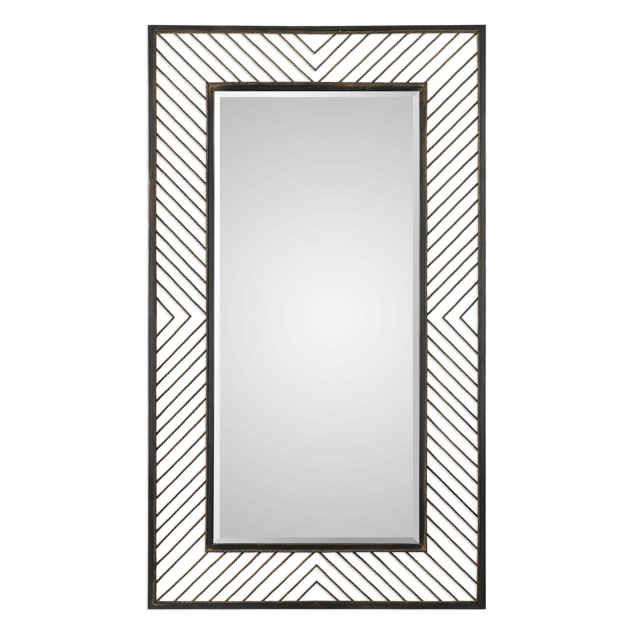 The Karel Chevron Mirror is a truly unique and stunning piece that will elevate any room in your home. Its twisted iron rods form a subtle chevron pattern, hand finished in a lightly distressed rustic bronze with a rust glaze and metallic gold undertones. This mirror has a generous 1 1/4' bevel and can be hung horizontally or vertically, making it a versatile and eye-catching addition to your decor.What sets this mirror apart is not only its beautiful design, but also the brand behind it. Uttermost is a family owned and managed US interior brand known for its upscale luxury aesthetic. With an extensive range of furniture, lighting, and accessories, they have some of the most talented designers in the industry creating fresh and unique collections to beautify your home.At Uttermost, quality is just as important as design. They take no shortcuts in manufacturing to ensure that their products exceed expectations. This means you can trust that the Karel Chevron Mirror is not only visually stunning, but also made to last.Measuring at 111.8 cm in width, 7.6 cm in depth, and 193 cm in height, this mirror is the perfect size to make a statement in any room. With free UK delivery, you can easily add a touch of luxury to your home with the Karel Chevron Mirror from House of Isabella.