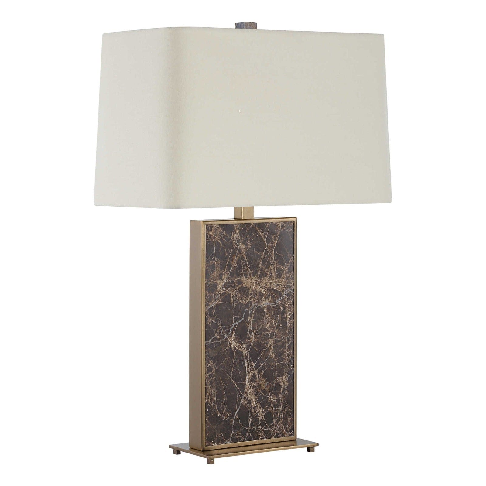 The Lafferty Table Lamp is a truly unique piece that will add a touch of luxury to any room. Featuring a stunning Emperador Dark Brown marble slab encased in a plated brass frame, this lamp is a true statement piece. The matching details and slightly tapered rectangular hardback shade in off-white linen fabric with soft curved corners add to its elegant design. Uttermost is a family owned and managed US interior brand known for its upscale luxury aesthetic. With an extensive range of furniture, lighting, and accessories, they have some of the most talented designers in the industry creating fresh and unique collections to beautify your home. From design to delivery, Uttermost pays close attention to detail to ensure their products exceed expectations. The Lafferty Table Lamp measures 45.7 cm in width, 45.7 cm in depth, and 71.8 cm in height, making it the perfect size for any space. With free UK delivery, House of Isabella is the go-to destination for luxurious furniture and interiors. Elevate your home with the Lafferty Table Lamp and experience the perfect blend of style and quality.