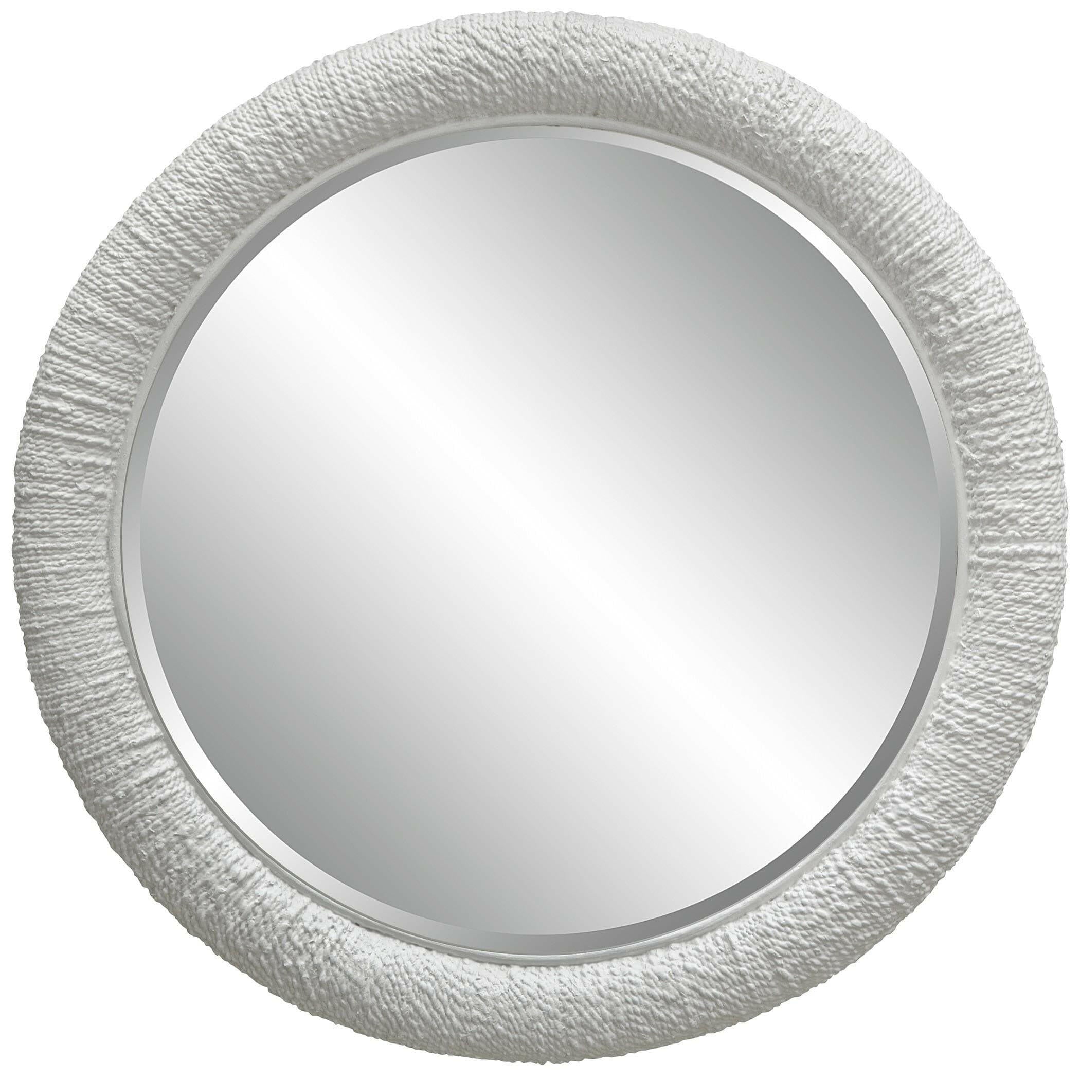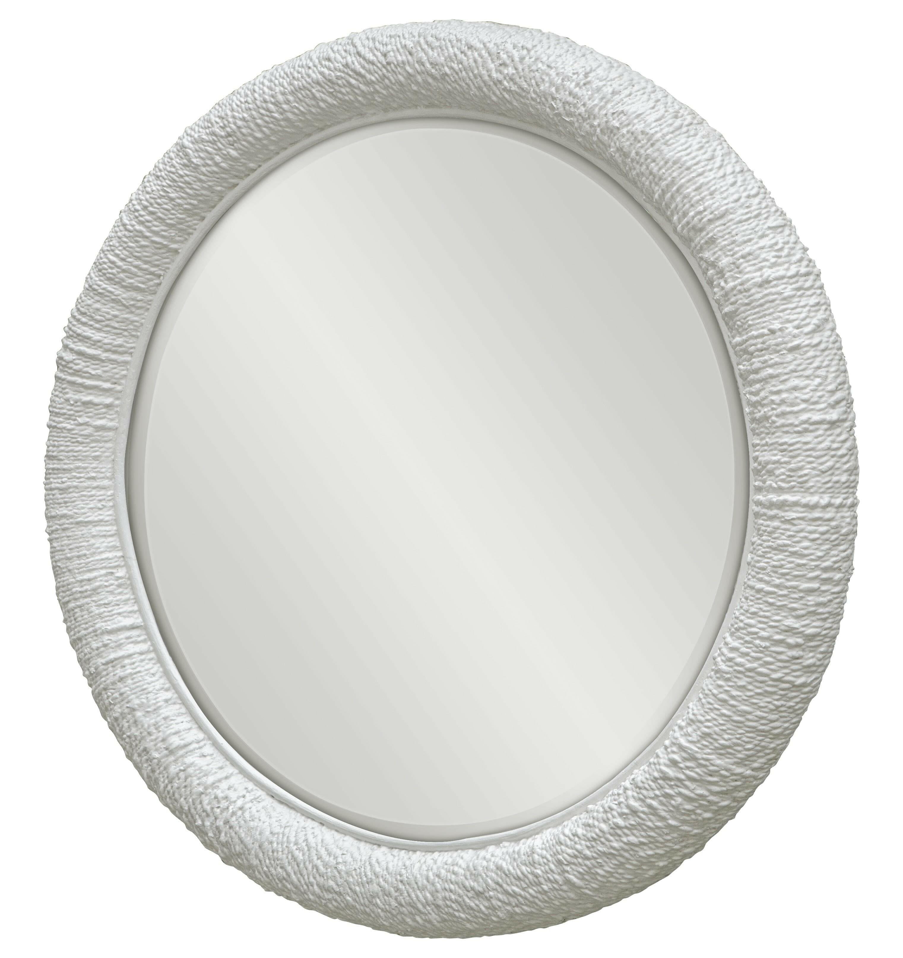 The Mariner White Round Mirror is a truly unique and stunning addition to any home. Its casual yet sophisticated design pays homage to classic coastal style, with a rounded frame made of natural woven banana plant and a rattan inner edge, all finished in a beautiful matte white. The mirror itself has a generous 1.5' bevel, adding depth and dimension to any room.