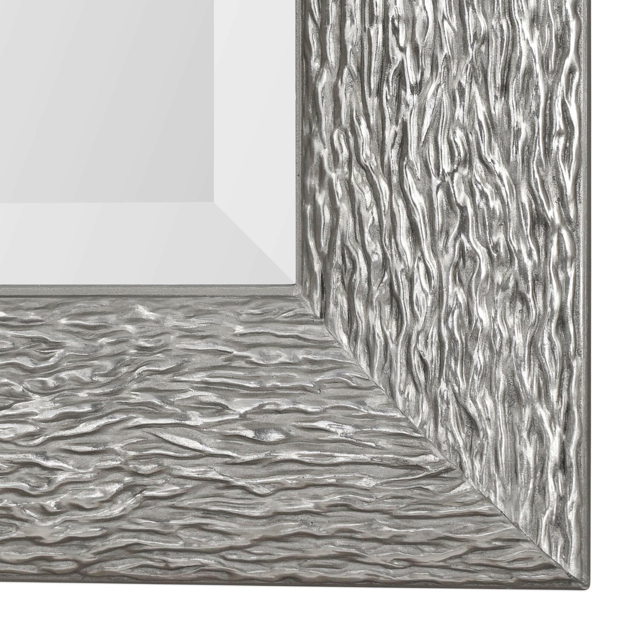 The Mossley Metallic Silver Mirror from House of Isabella is a truly unique and luxurious addition to any home. Its solid wood frame features an embossed wavy texture, finished in a stunning metallic silver with a light gray wash. The mirror itself boasts a generous 1 1/4' bevel and can be hung either horizontally or vertically, making it a versatile and eye-catching piece.What sets this mirror apart is not only its beautiful design, but also the brand behind it. Uttermost is a family owned and managed US interior brand known for their upscale luxury aesthetic. With an extensive range of furniture, lighting, and accessories, they have some of the most talented designers in the industry creating fresh and unique collections to beautify your home.At House of Isabella, we are dedicated to bringing you the most fashion-forward products in the industry. But we also understand that good design means nothing without quality manufacturing. That's why we ensure that no shortcuts are taken in the production of our products, so you can be certain that they will exceed your expectations.The Mossley Metallic Silver Mirror measures 74.9 cm in width, 2.5 cm in depth, and 105.4 cm in height, making it a statement piece that will elevate any room. With free UK delivery, it's never been easier to add a touch of luxury to your home. Shop now and experience the elegance and sophistication of the Mossley Metallic Silver Mirror from House of Isabella.