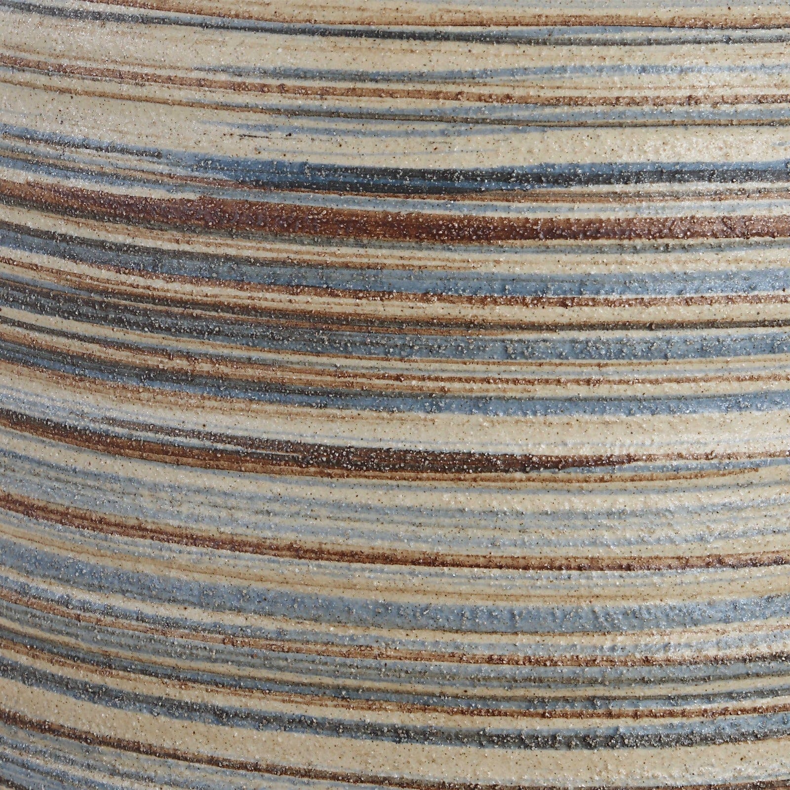The Prospect Table Lamp, Large is a truly unique and luxurious addition to any home. Its ceramic base features a stunning striped design in muted shades of brown, taupe, cream, and blue, accented by brushed nickel-plated details. Topped with a light beige linen drum shade with natural slubbing, this lamp exudes refined elegance.