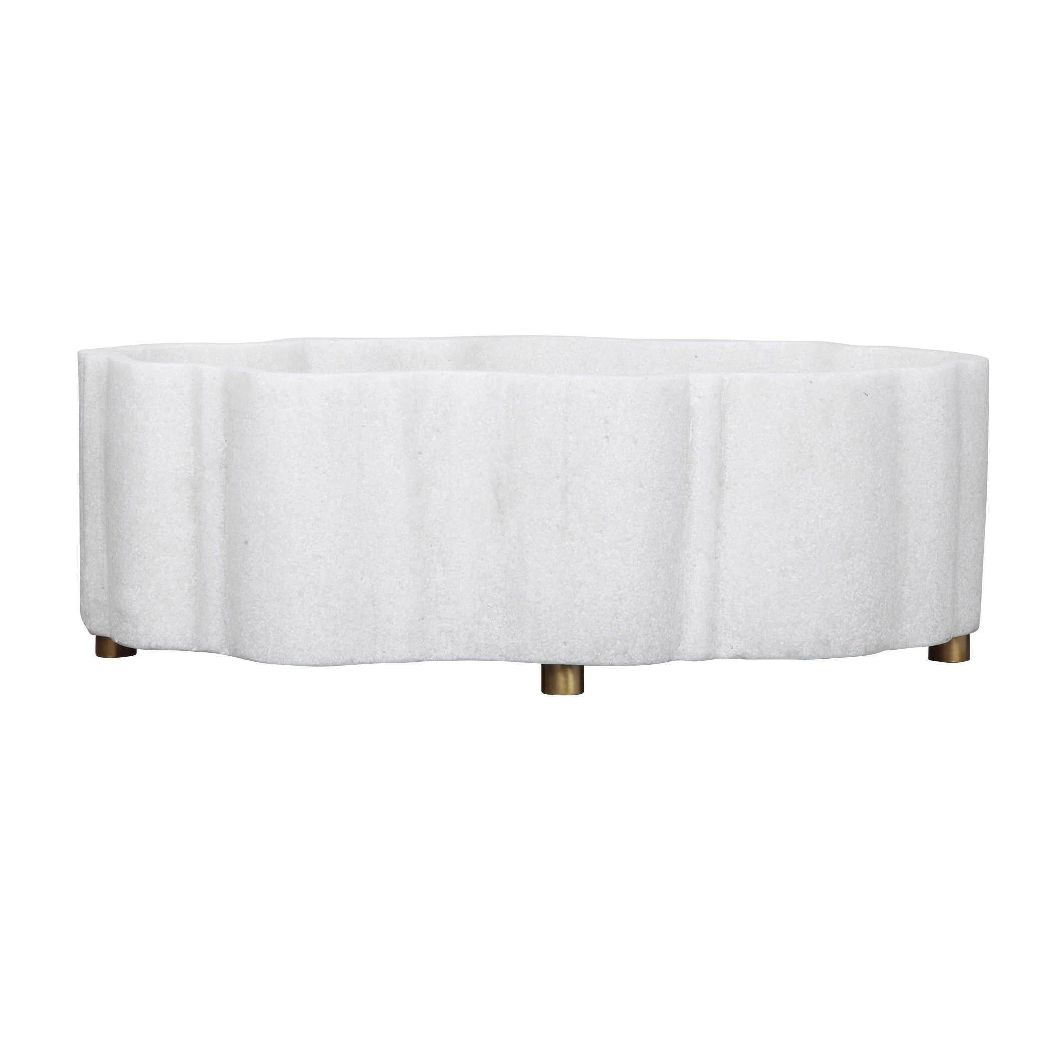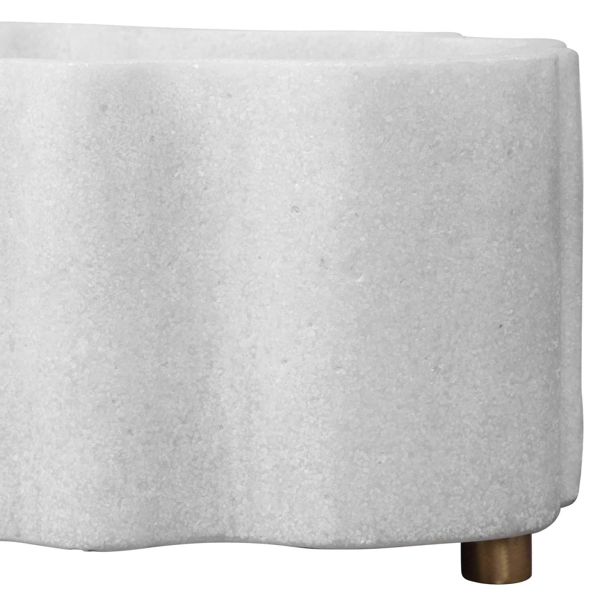 The Ripple Planter - Oval is a unique and versatile piece that will make a statement in any home. Crafted from ivory man-made stone, it accurately replicates the look of Thassos marble, adding a touch of luxury to your space. Designed to hold 3-4 standard 6' high pots, it is perfect for showcasing your favorite plants or orchids. This piece is part of the Black Label by Uttermost, our most exclusive collection of premium upscale furniture, lighting, and home accessories. Our in-house team of skilled designers ensures that each item is of the highest quality, bringing you the latest in American style. With a focus on upscale home luxury, our products feature generous proportions and sophisticated designs. From oversized mirrors to elaborate lamps and lighting fixtures, our collection has something for every taste. At House of Isabella UK, we understand that good design means nothing without quality manufacturing. That's why we take no shortcuts in ensuring that our products exceed expectations. The dimensions of the Ripple Planter - Oval are Width: 54.6 cm, Depth: 32.4 cm, Height: 18.4 cm. Explore our exquisite collection of ornaments and add a touch of elegance and sophistication to your home decor. With free UK delivery, House of Isabella is your destination for luxurious furniture and interiors.