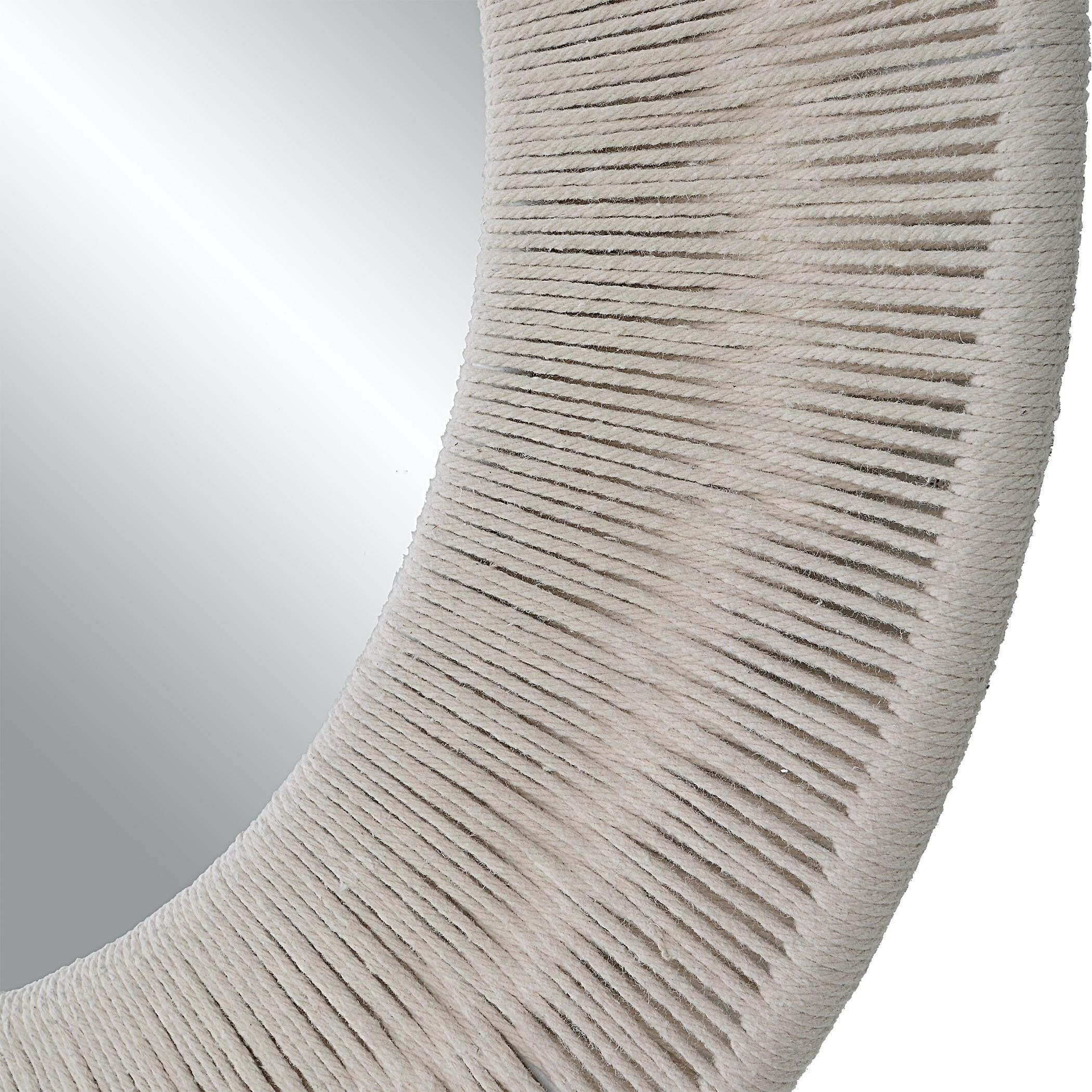 Introducing the Sailor's Knot White Small Round Mirror, a unique and versatile piece that pays homage to its coastal inspiration. Made with a combination of natural textures and materials, this mirror features crisp white rope stretched over a solid iron frame. Its casual yet elegant design adds a touch of coastal charm to any space.