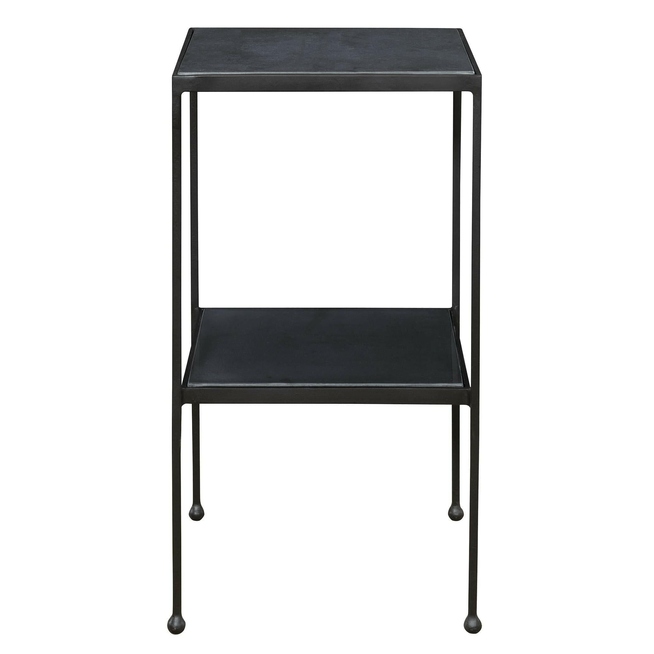 The Sherwood Square Marble Accent Table is a truly unique piece that will elevate any room in your home. Made from solid iron, this accent table boasts a smooth matte black finish and features double black honed marble shelves. This stunning piece is brought to you by Uttermost, a family owned and managed US interior brand known for their upscale luxury aesthetic.