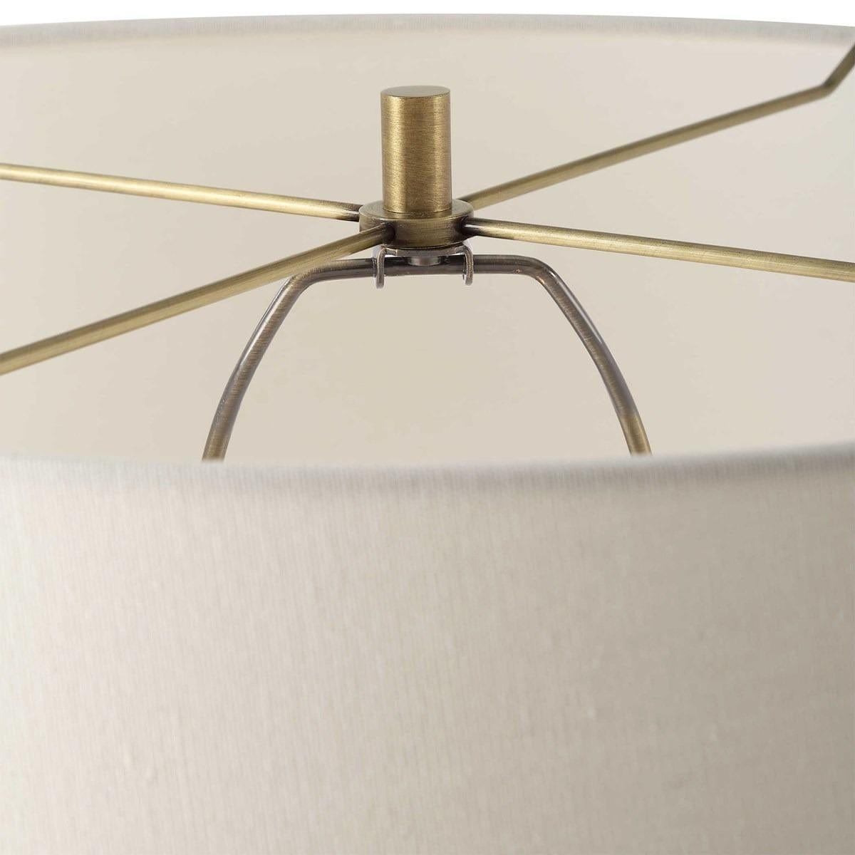 The Shino Antique Brass Floor Lamp is a stunning addition to any home. Its unique design seamlessly blends contemporary and traditional styles, making it a versatile piece that can complement any decor. Crafted from iron and finished in plated antique brass, this lamp exudes a timeless elegance. The thick black travertine foot adds a touch of sophistication to the overall design. The round hardback shade is slightly tapered and made from white linen fabric with light slubbing, adding a soft and warm glow to any room.What sets this floor lamp apart is the brand behind it - Uttermost. As a family owned and managed US interior brand, Uttermost is known for its upscale luxury aesthetic. Their team of talented designers constantly create fresh and unique collections to beautify your home. But it's not just about style - Uttermost also prioritizes quality manufacturing, ensuring that their products exceed expectations.The dimensions of the Shino Floor Lamp are 50.8 cm in width, 50.8 cm in depth, and 167.6 cm in height, making it a perfect fit for any room. At House of Isabella, we offer luxurious furniture, interiors, and free UK delivery. With our wide range of products, you can elevate your home with the finest pieces. Trust us to bring you the most fashion-forward and high-quality products in the industry.