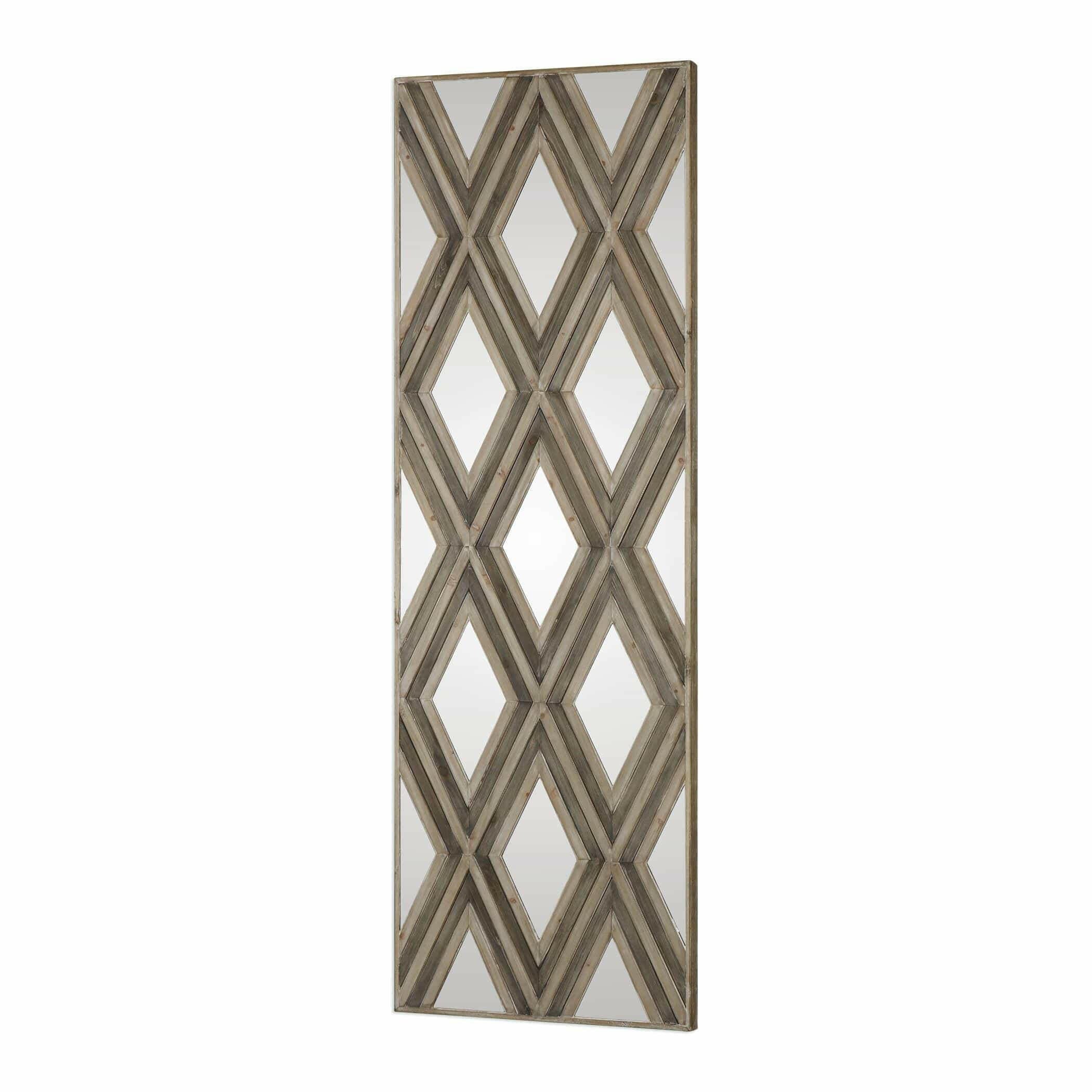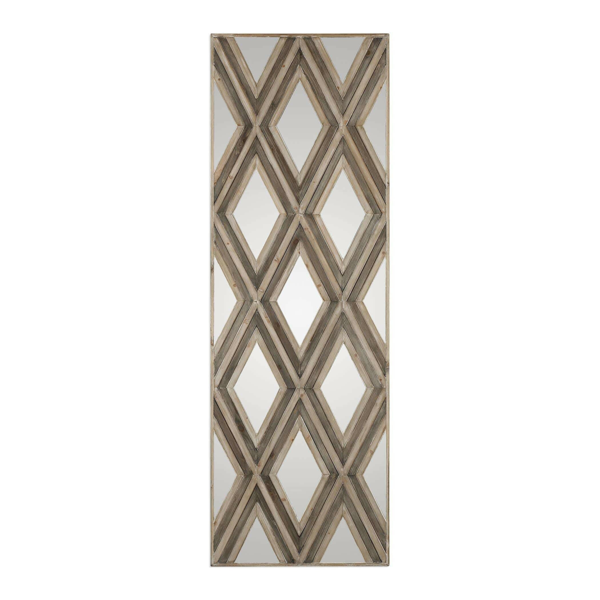 An Updated Blend Of Casual And Contemporary With Mirrored Accents, Layered With Fir Veneers In A Geometric Argyle Pattern, Finished In Ivory And Chestnut Gray. This unique wall mirror, the Tahira Geometric Argyle Pattern Wall Mirror, is a stunning addition to any home. Its blend of casual and contemporary design, combined with mirrored accents and a geometric argyle pattern, creates a one-of-a-kind piece that will elevate the style of any room. Uttermost is a family owned and managed US interior brand that prides itself on its upscale luxury aesthetic. With an extensive range of furniture, lighting, and accessories, Uttermost is known for its fashion-forward and unique designs. The Tahira Geometric Argyle Pattern Wall Mirror is just one example of the talented designers at Uttermost creating fresh and complimentary collections to beautify your home. But Uttermost doesn't just focus on style - quality manufacturing is also a top priority. No shortcuts are taken in the production of their products, ensuring that they exceed expectations in both design and durability. This wall mirror measures 61 cm in width, 4.4 cm in depth, and 182.9 cm in height, making it a statement piece that will add dimension and style to any space. House of Isabella is proud to offer this luxurious piece, along with many other high-end furniture and interior items, with free UK delivery. Elevate your home with the Tahira Geometric Argyle Pattern Wall Mirror and other stunning pieces from House of Isabella.