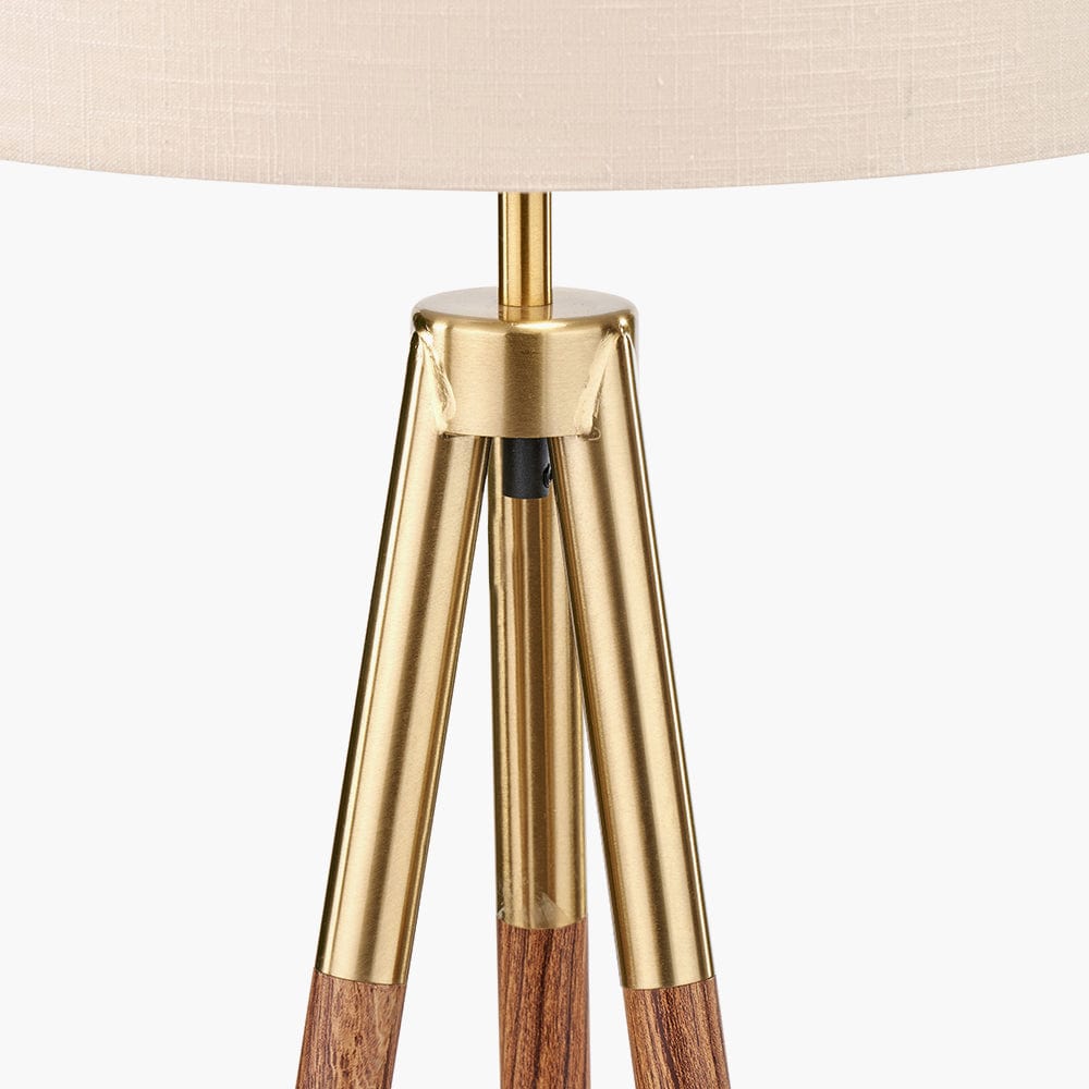 Vali Gold Metal and Brown Wood Grain Tripod Floor Lamp