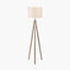 This contemporary tripod floor lamp is finished in a brown wood veneer and gold metal, is topped off perfectly with a natural lampshade. This floor lamp, featuring 3 slim legs, will slot easily into any interior space, offering an extra light source and sophisticated styling.