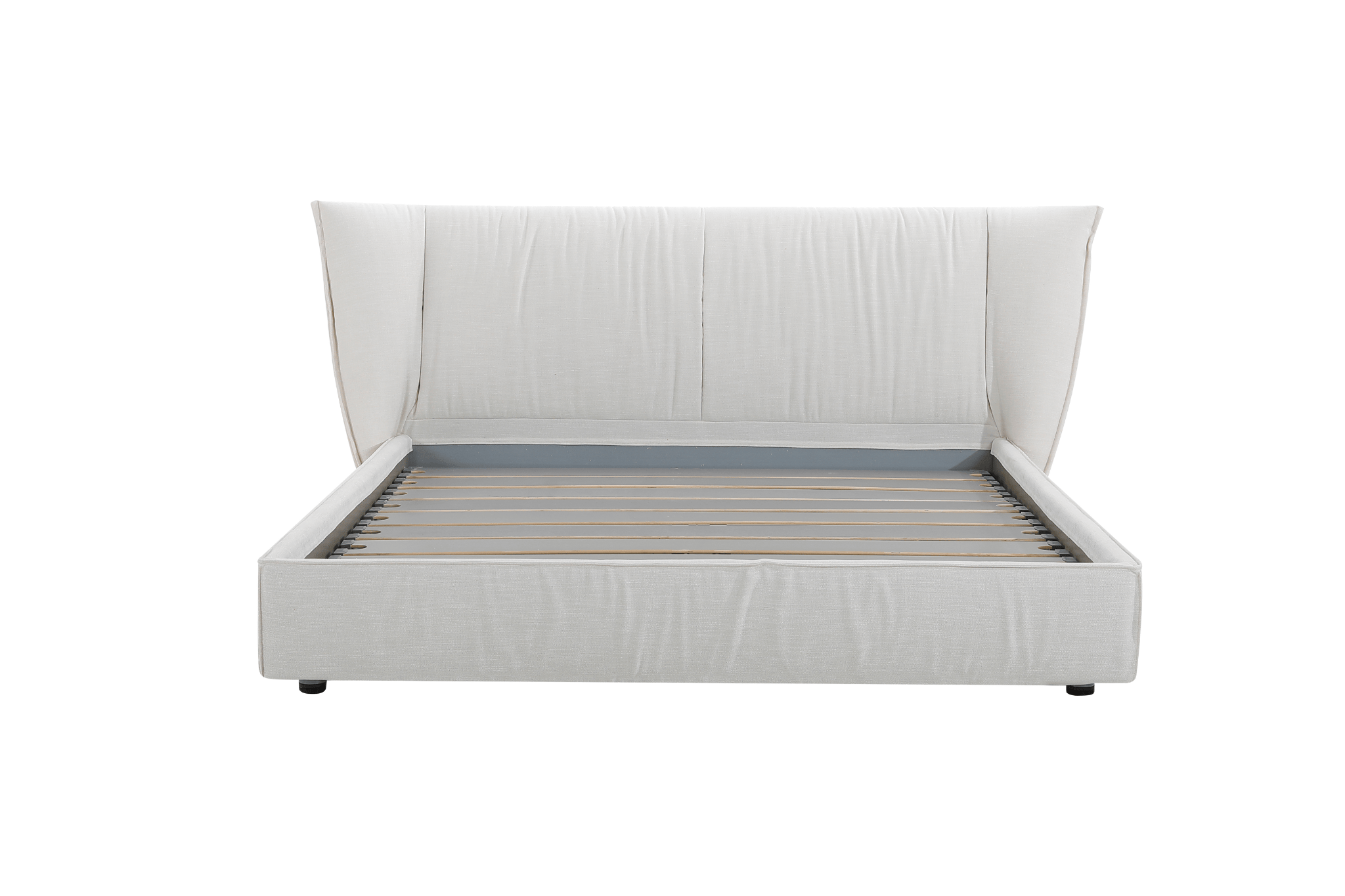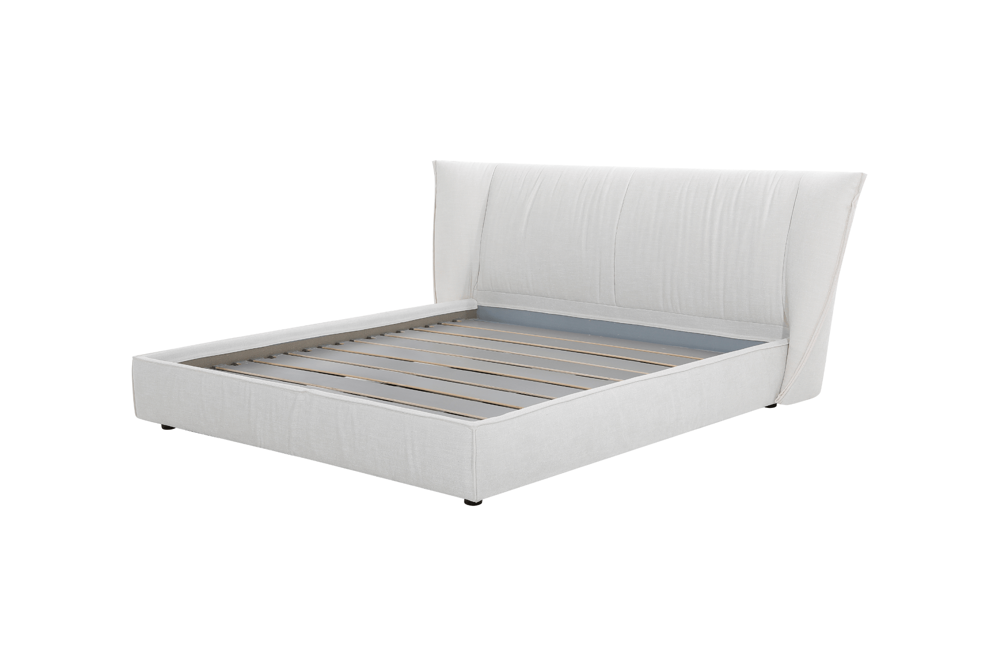 King size bed with a sleek, sculptural headboard design