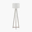 Simply stylish, the Whitby Floor Lamp has four tapered wooden legs and an elegant criss cross detail at the base. The slender profile and neutral washed grey wood is a match for most decor. The floor lamp base looks fabulous with the modern white linen self-lined shade. The open weave fabric of the white lamp shade allows the light to shine through and produces a soft, ambient glow throughout your interior.