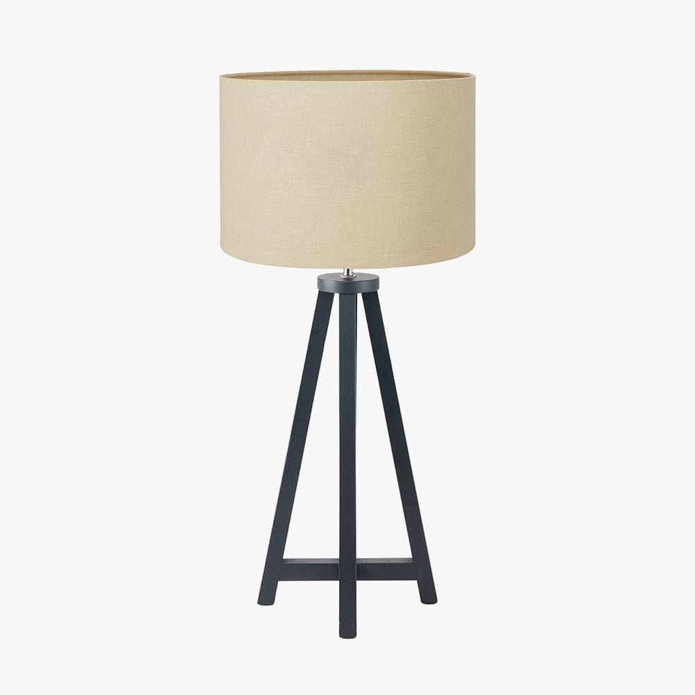 Whitby Matt Black Wood Tapered 4 Post Table Lamp Base with Lino 35cm Butterscotch Self Lined Linen Cylinder Lampshade | House of Isabella UKSkip to content