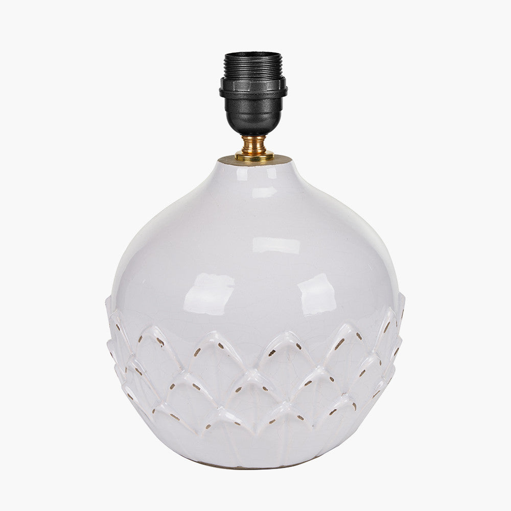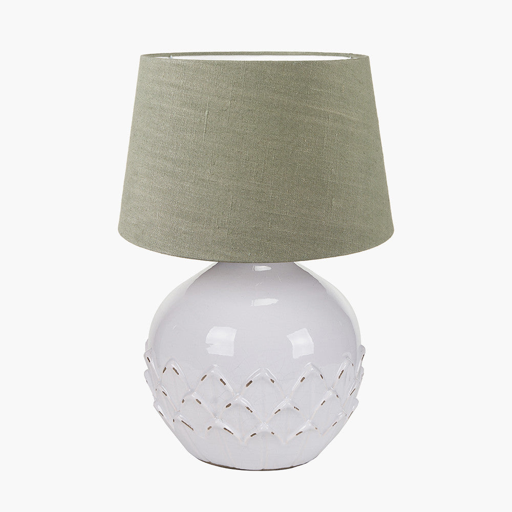 Willow White Leaf Detail Small Stoneware Table Lamp Base with Milos 25cm Pistachio Green Linen Tapered Lampshade