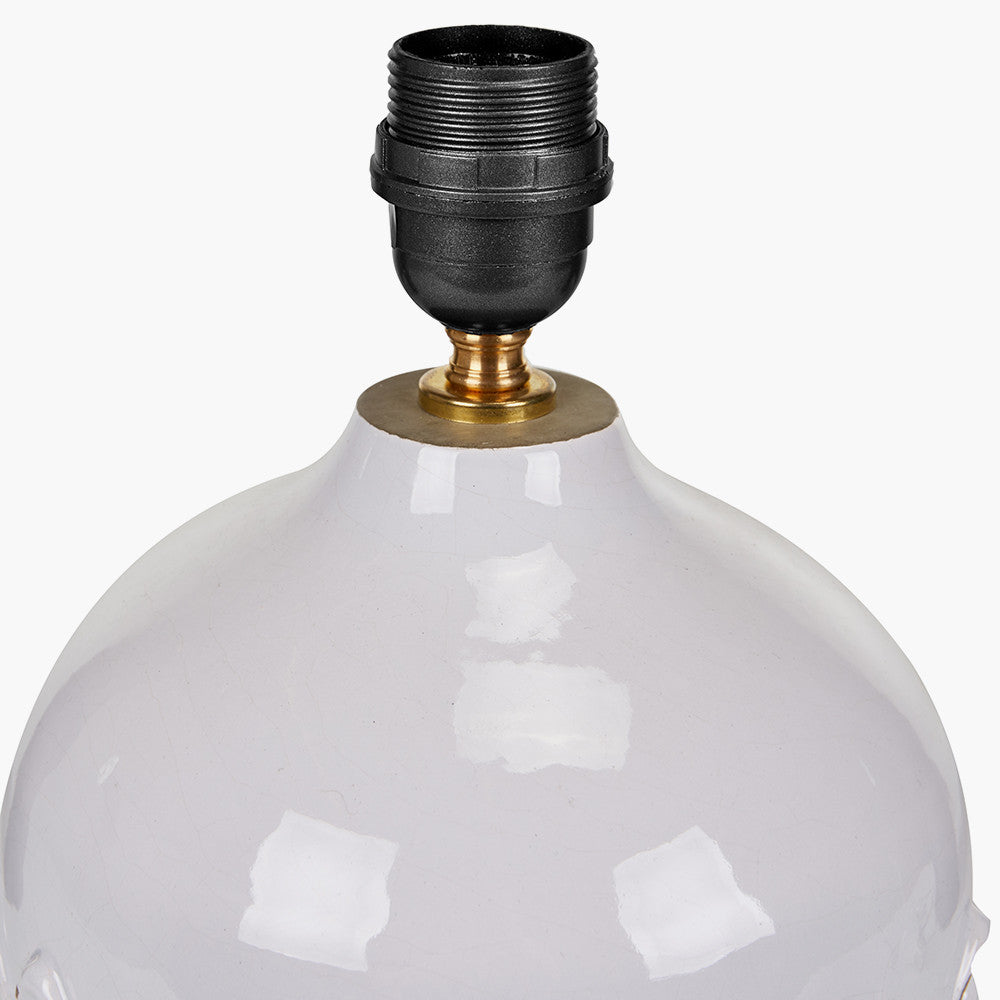 The delicate curves and textured 3D leaves of the Willow Stoneware Table Lamp have been lovingly hand-crafted and added one by one to make this pot a beautiful artisan piece. A light distressing has been added to the leaves to highlight the edges. This elegant table lamp is finished with an open weave jute linen pistachio tapered lamp shade, that allows the light to softly filter through the weave producing a soft glow when lit.