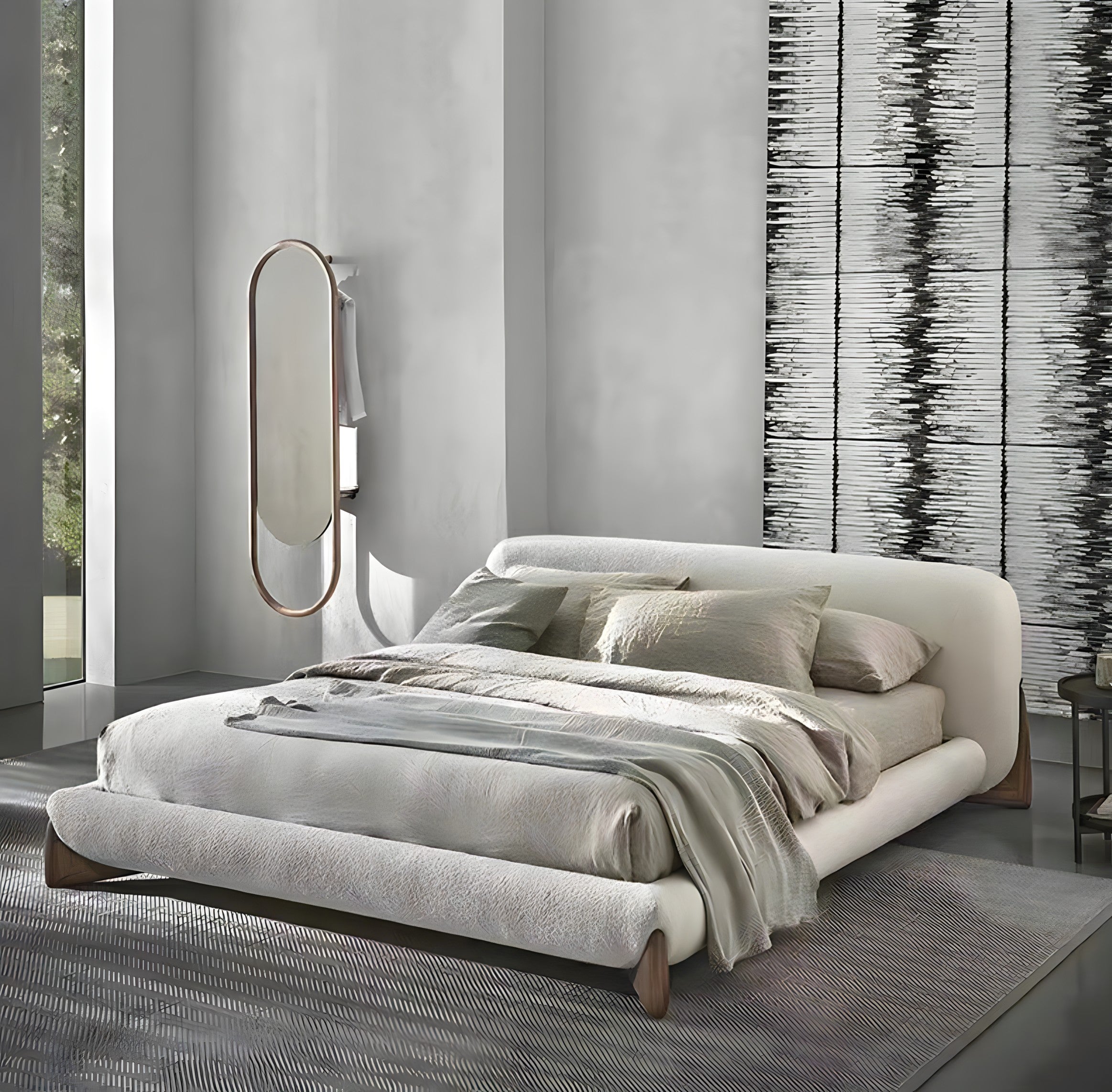 The Yukina Bed is where modern elegance meets everyday comfort. With its soft, sculptural frame wrapped in a luxurious textured fabric and grounded by sleek wooden accents, it creates a striking yet soothing centrepiece for any bedroom. Its clean lines and minimalist design bring a sense of calm sophistication, perfect for those who appreciate understated luxury.
