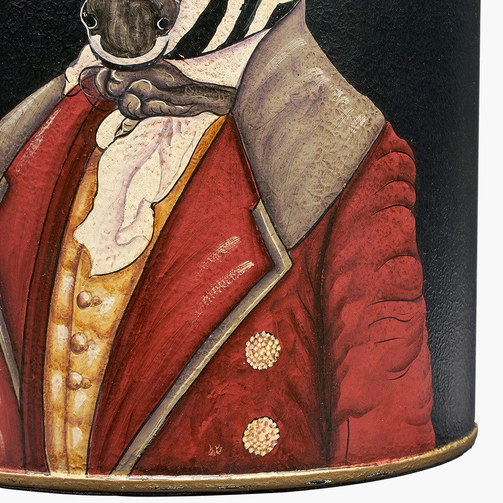 Add this statement table lamp base to any interior to create a real wow factor. The black base with the mono stripes of the magnificent zebra and a flash of red will stop you in your tracks. Lovingly hand-crafted by a team of artisans in India, the beautiful lacquered iron base perfectly juxtaposes classic and quirky. The table lamp base is topped off perfectly with a simple cylinder cotton mix black lamp shade.